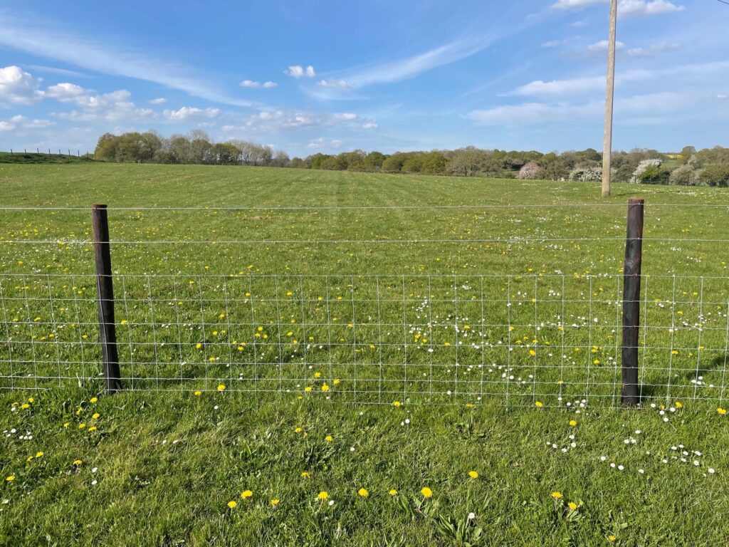 Fencing is 5ft high, with stock fencing with tensioned wire above. All gates have mesh panels.