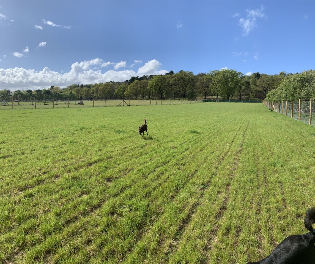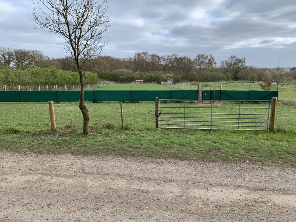 One acre fully secure 5ft 6in high fencing with rabbit netting at the bottom above and below ground.