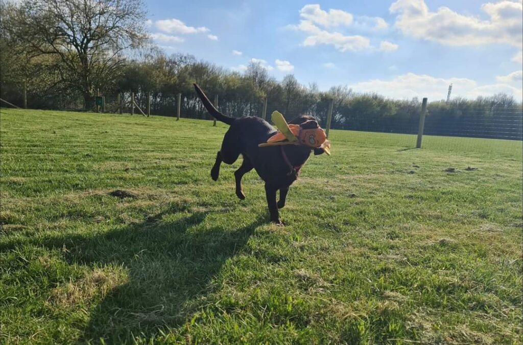 Secure dog paddock with 4ft horse netting (8cm gaps), side of road parking or grass area parking. On site dog waste bins. Cctv on parking area (still parking at own risk)