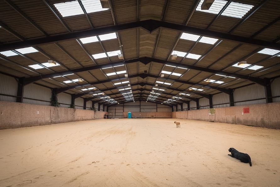 The BIG Barn is a massive indoor sand school. It is approximately 3/4 of an acre of secure area for dog exercise, training or just having some peace away from other dogs, people or distractions. There is also an outdoor area to use during your time at no extra cost.