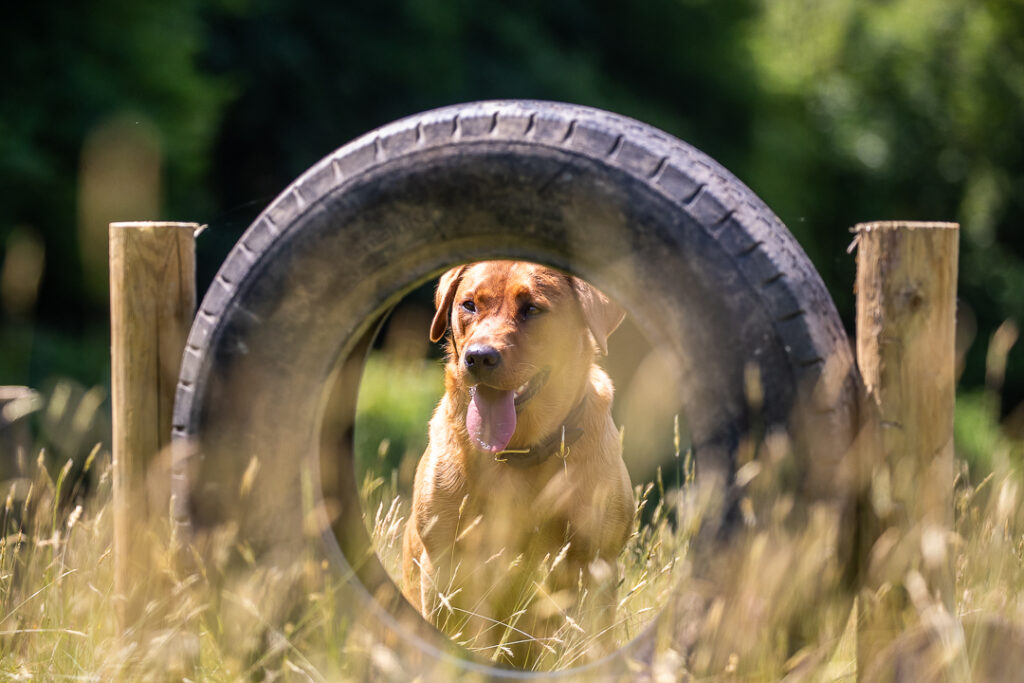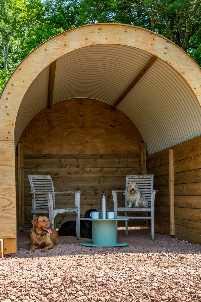 We have a secure 6 acre site just outside Bampton (Devon not Oxford)! Here your dogs can enjoy the safety of the field whilst you walk the mown paths through the long grass, enjoy the benches dotted around the field or take a rest in the shelter. In the field there are tyres for the dogs to play in, a paddling pool and a great area for them to stretch their legs.