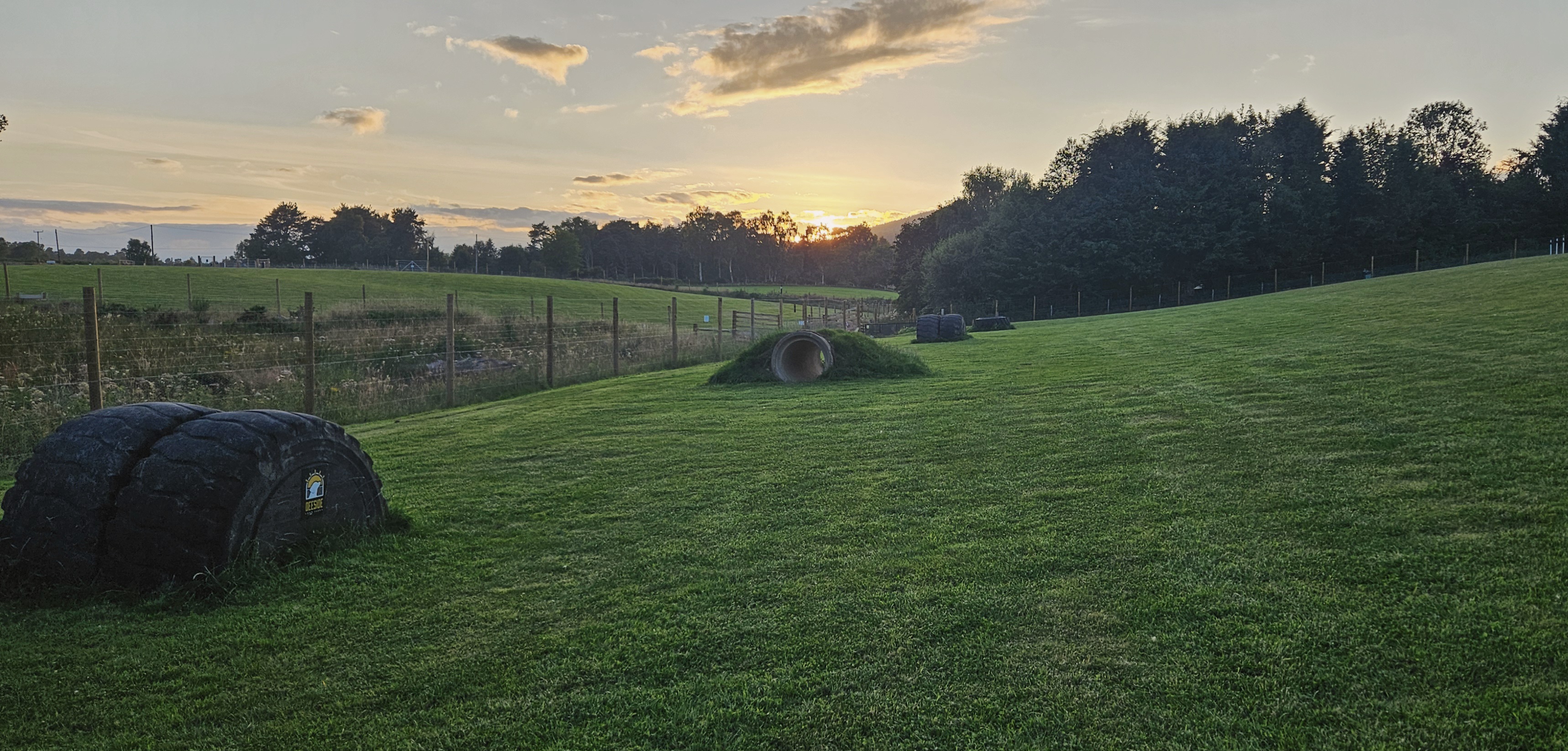 Agility jumps, tunnels, A-frame, sandpit, and an “up and over”