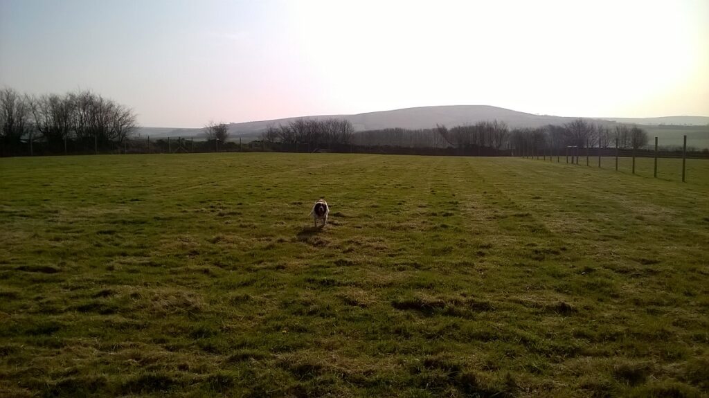 Secure dog walking and exercise field in North Devon. The dog park is 2 acre in size with 6ft deer fencing with great views of Exmoor. Can be booked for exclusive use which is ideal for reactive dogs, dogs with prey drive that cannot normally go off lead, or for training a dog recall and other. We are just 20 minutes from Barnstaple and south Molton. great views of Exmoor.
