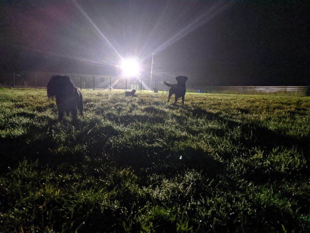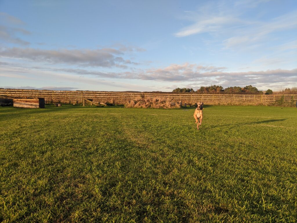 Our field has 5-6ft fencing. 98% is 6ft, with only a small portion near the gate being 5ft. It has chicken mesh on the lower half, so no sneaky terriers should be able to get out. This also limits wildlife to the odd bird or vole, which usually make themselves scarce quickly. We also have a floodlight for winter sessions.
