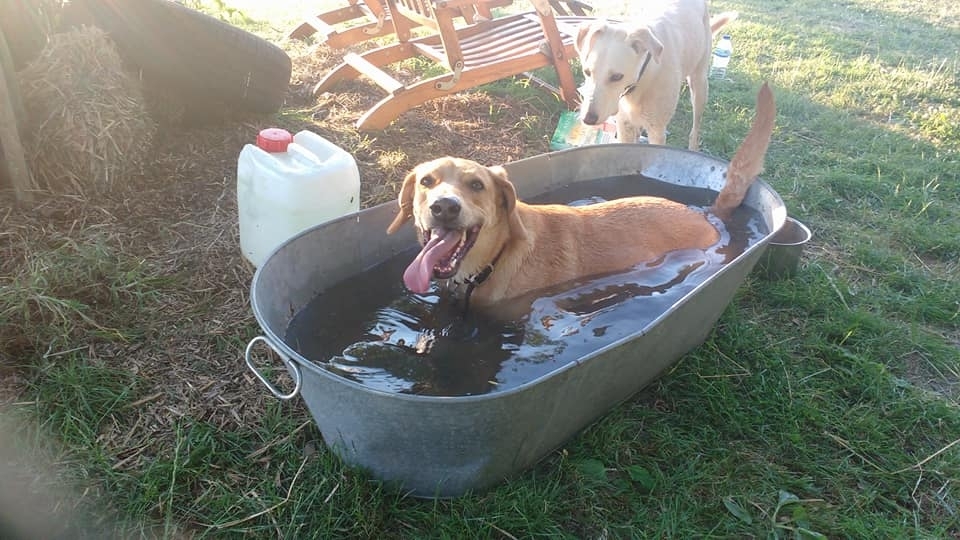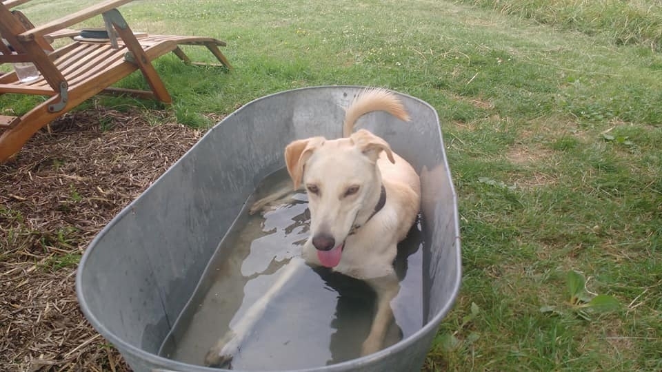 In wetter months the pond is full, in the summer months the tin bath is full!