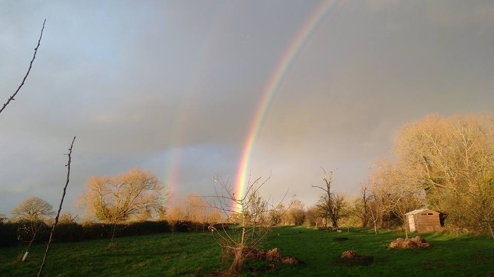 The orchard is 3.3 acres and has some mature and young trees giving shade, the orchard is left wild with tracks mowed around it, giving interest to dogs and encouraging wildlife and wild flowers.