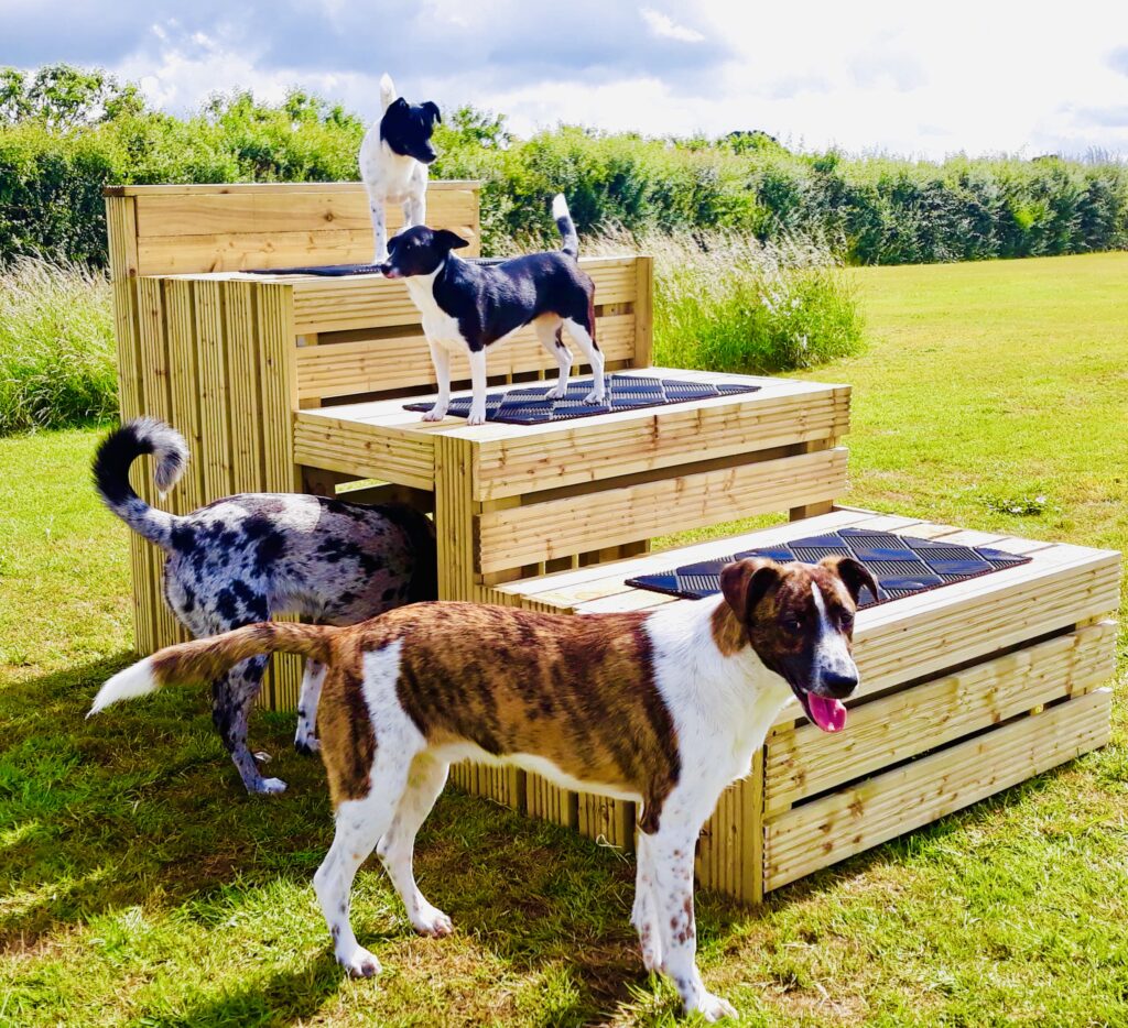 Four Acres is our newest 4 acre field and has a huge flat expanse for dogs to run and and also a sensory straw room for sniffing and exploring.