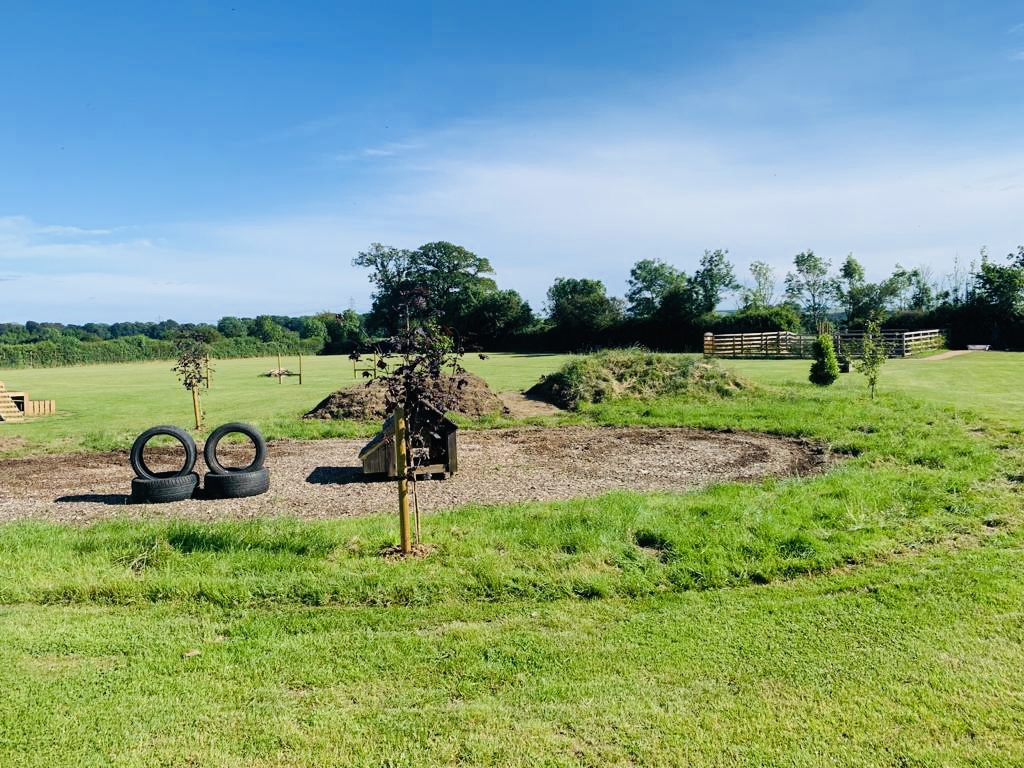 5) Long grass areas, logs and fun agility equipment including sandpit and pool in summer months