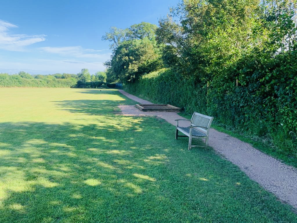 1) 6ft fencing and mature hedging, with shady spots and benches scattered through the field