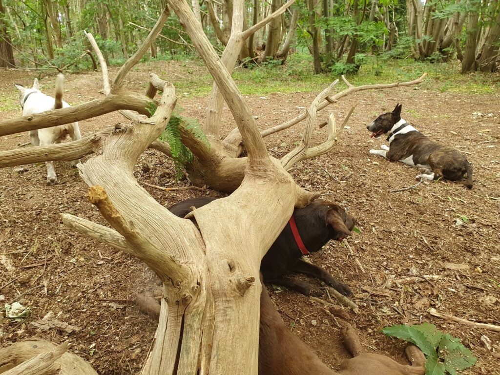 On the West side there is sand/loam soil that has been extracted leaving a shallow quarry. Providing a perfect area in the woodland for dogs to investigate and prevent them from getting bored. There are lots of different areas that give dogs a lot to explore. There is a water station for the dogs at the front pedestrian access gate. We have provided two access points for safety, and request that you do not smoke whilst in the wood in case of fire.