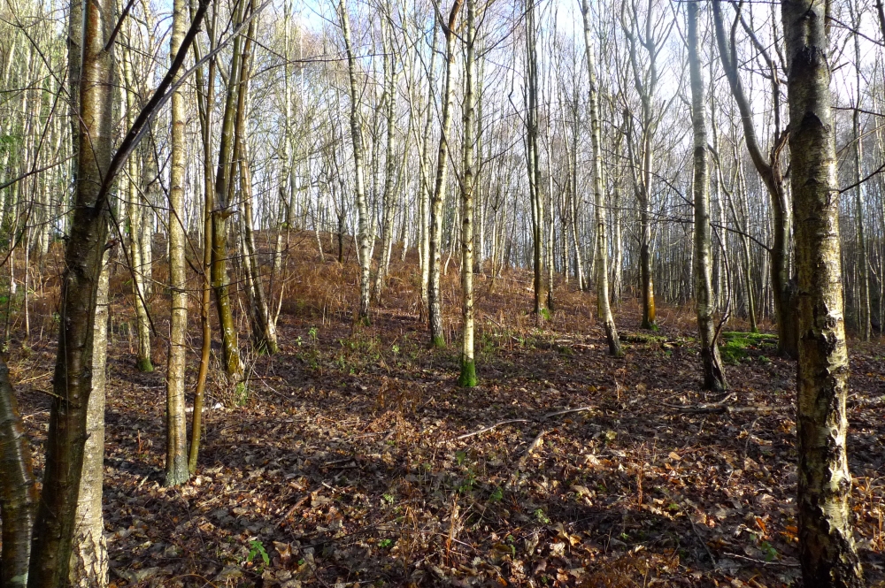 Hollin Wood is a 3 acre wood based in Broomfield Maidstone Kent. The wood sits on a hillside flanked on either side by shallow valleys; the plateaux at the top has an unusual plantation of standard chestnuts. The lower slopes are home to young silver birch.