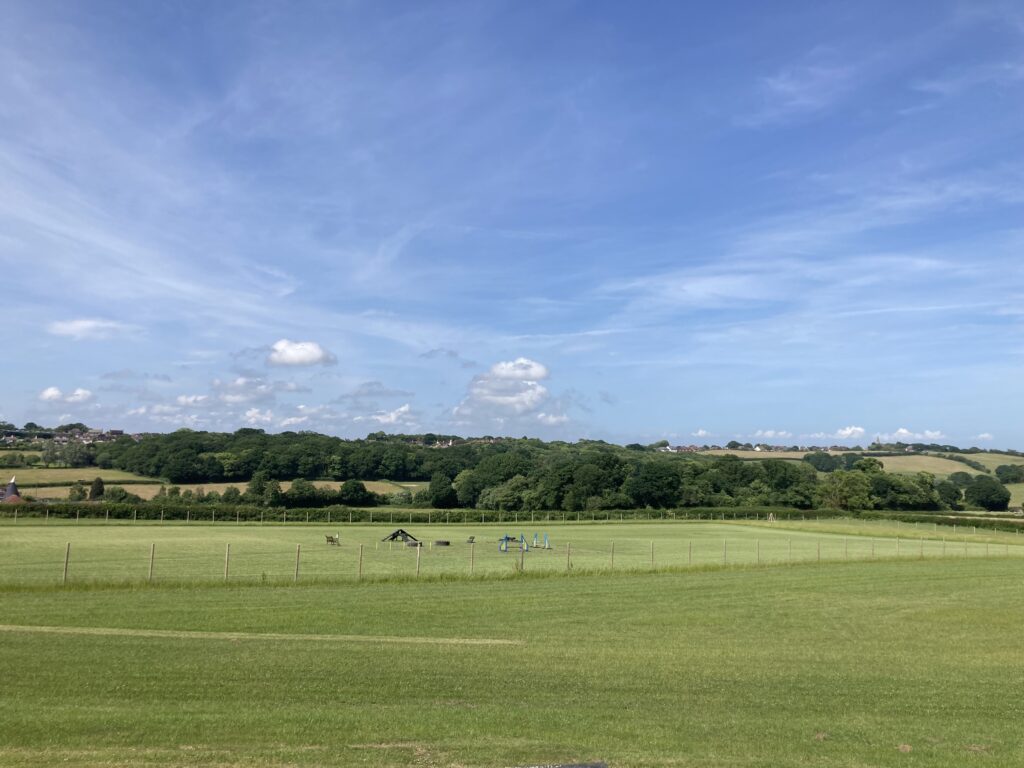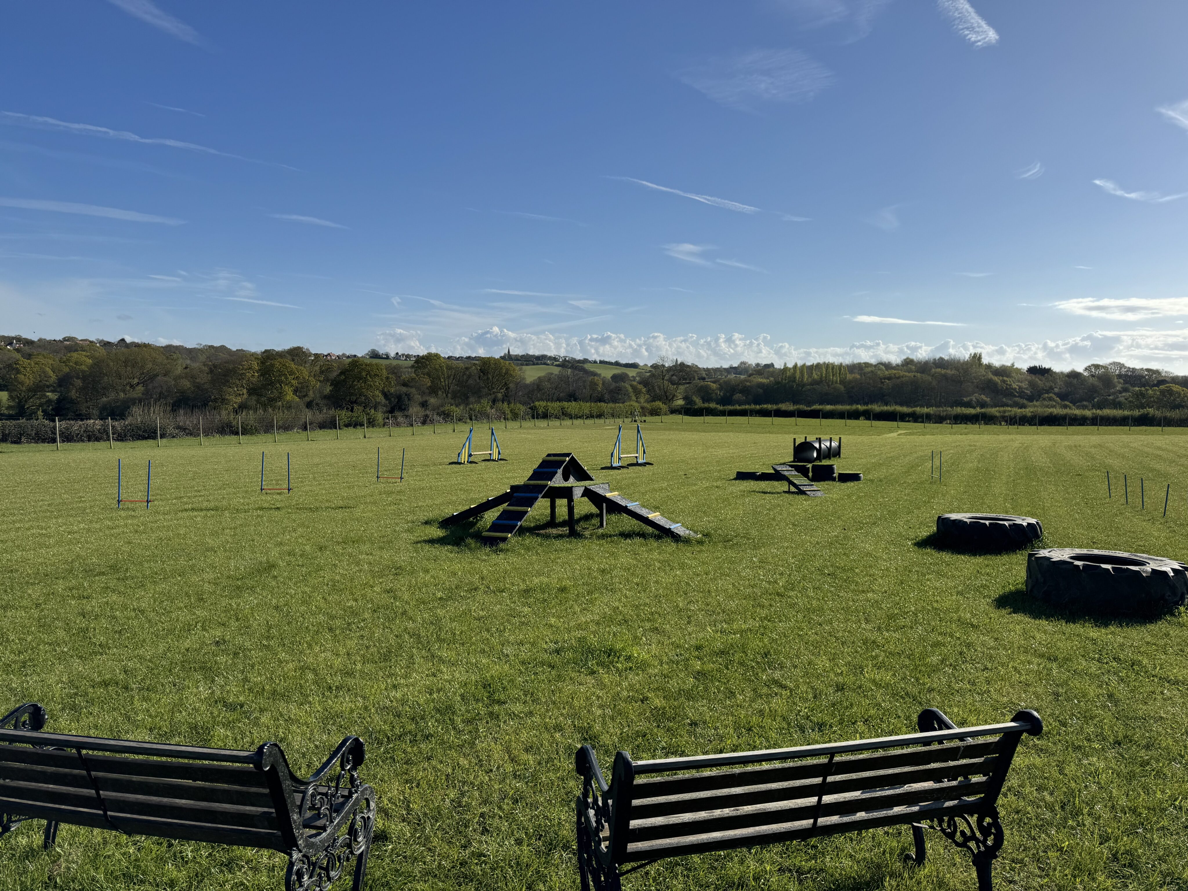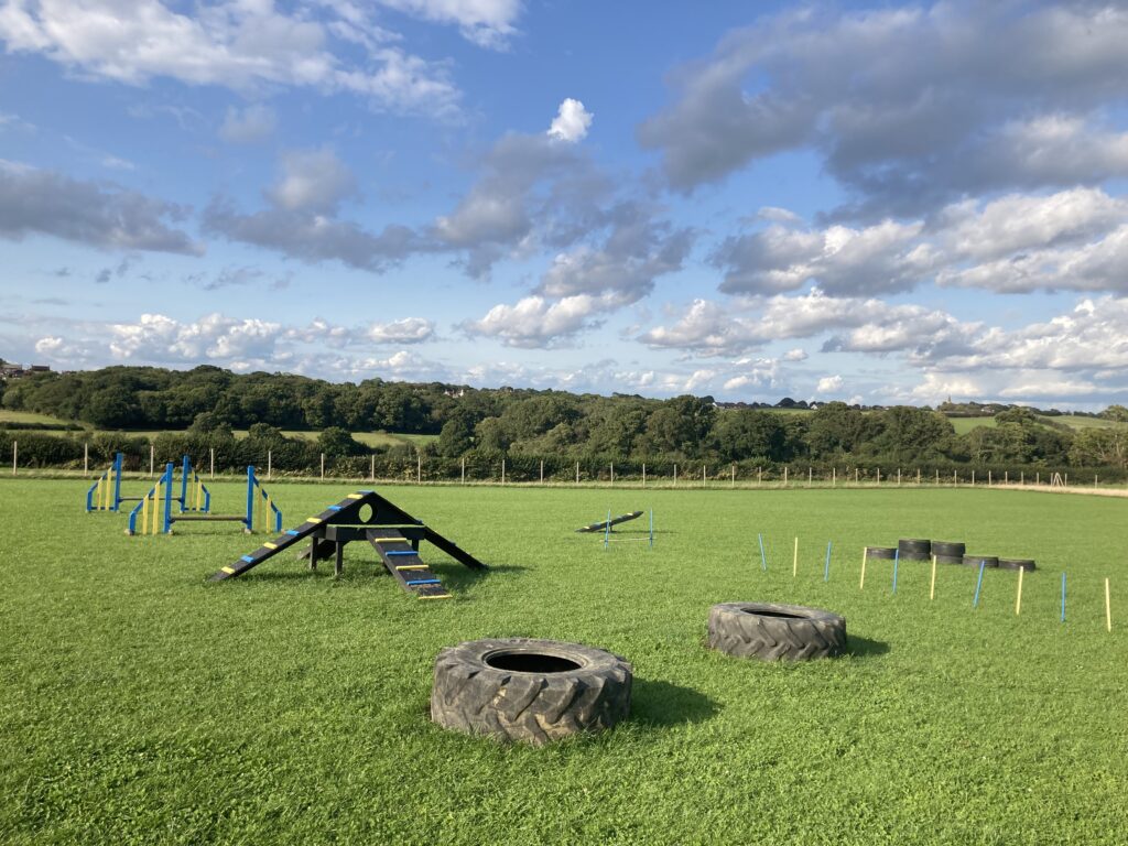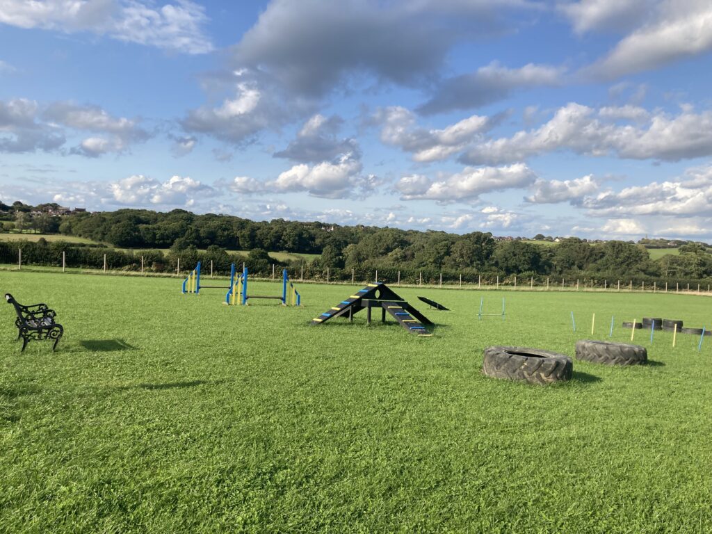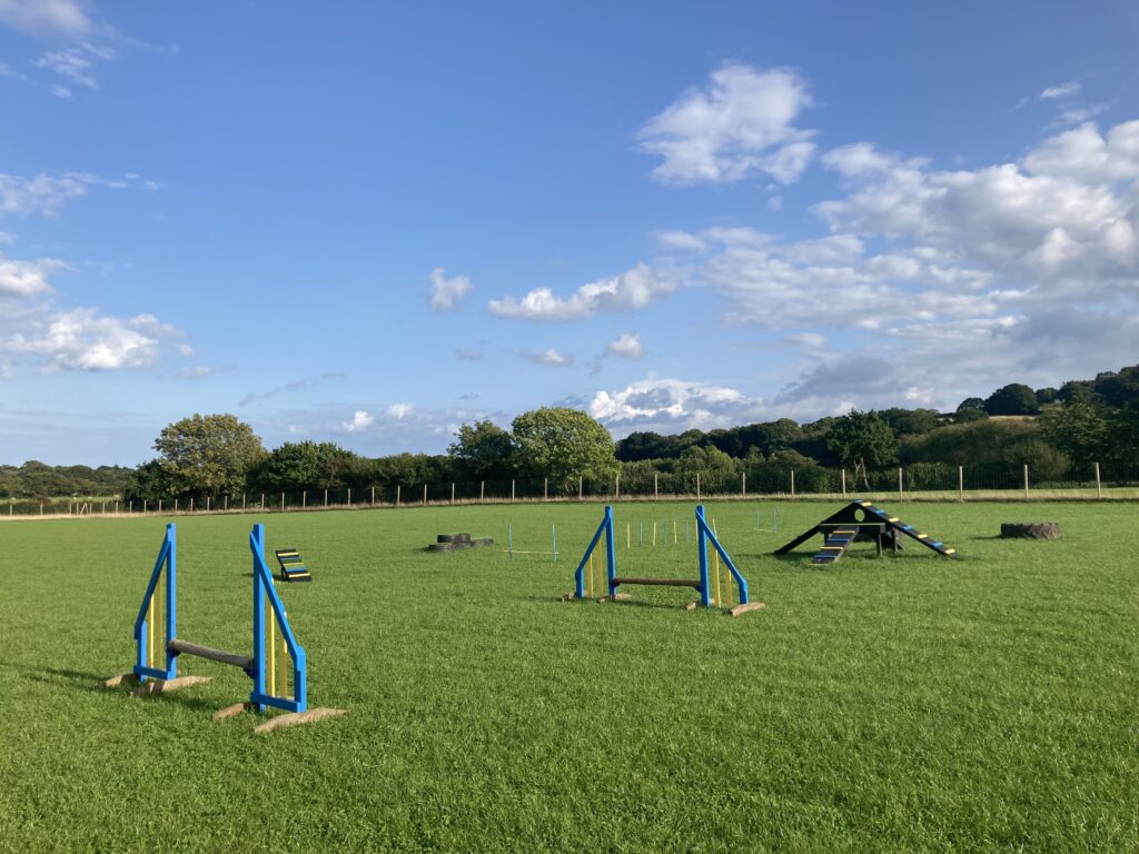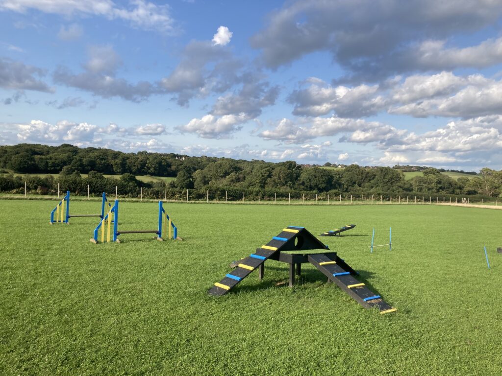 Whether you need to practice recall, puppy training, rehabilitation exercise or simply just exercise your dog(s) in peace, Inca’s Field is ideal. We are situated in Fairlight (near Pett), set in beautiful countryside. Our dog exercise field is 3 acres within our land, surrounded by a 2-metre-high deer fence and is secured with a slide bolted gate. You can enjoy an hour of exclusive use for £11. Or you can bring along a friend with their dog(s) to your session with no added cost! In each session, there is to be a total maximum of 6 dogs. All dogs must be registered on Web Collect. In the field, we have various dog agility equipment including ramps, see-saw, jumps, tyres, tunnel, and weave poles. We also have a shelter, fresh drinking water available for the dogs, dog waste only bin, several benches and a seasonal meadow with paths cutting through. If you are a dog walking business or run dog classes and would like to use the field, please contact us to discuss your requirements.