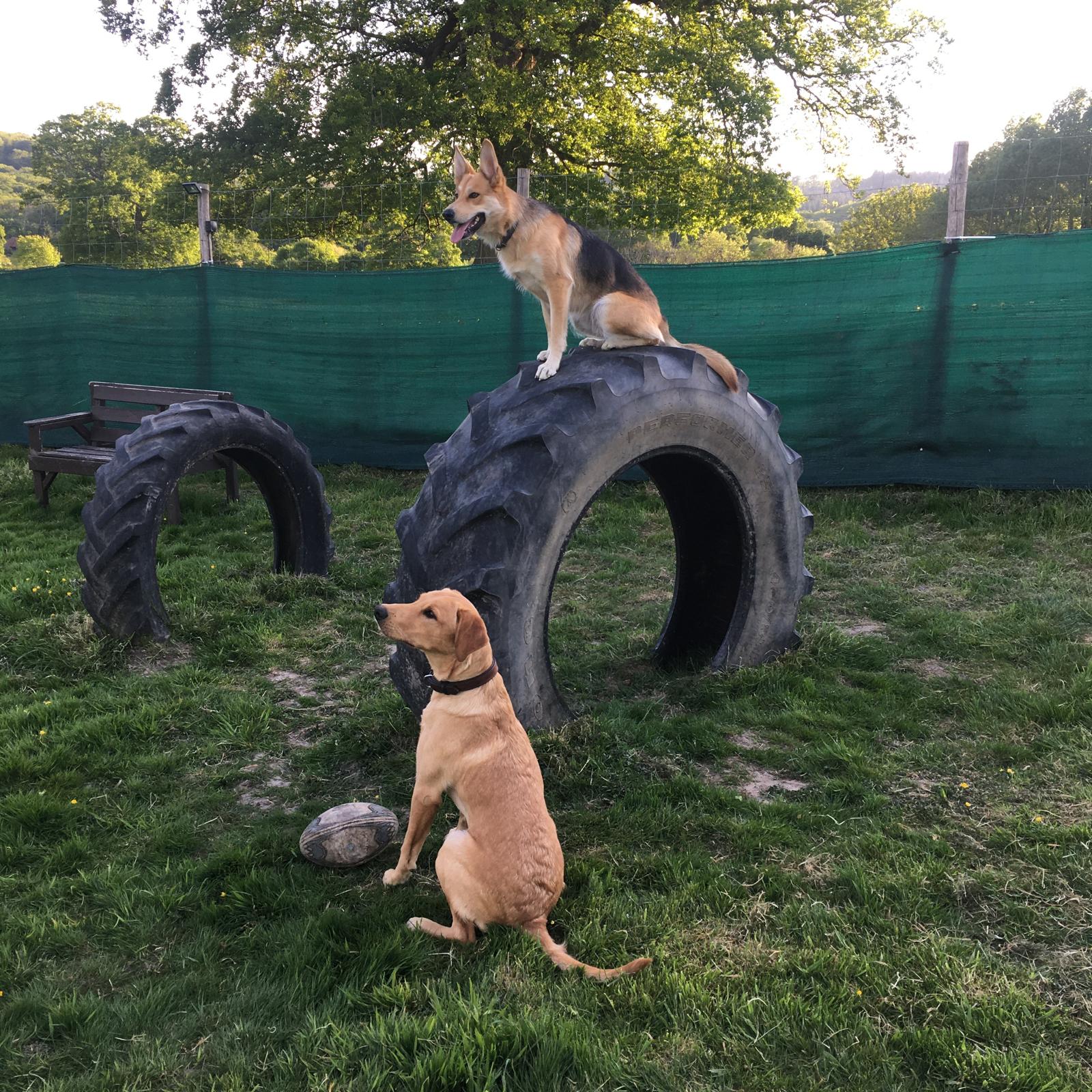 We have flood lighting for evening and winter sessions, a summer house, picnic table and outdoor seating, a dog wash station, and a scurry, sandpit and a tunnel. Poo bags/first aid kits for dogs and humans are also provided on site. We have Agility sessions and three trainers hold Group training and 1-2-1 classes and socialisation classes too.