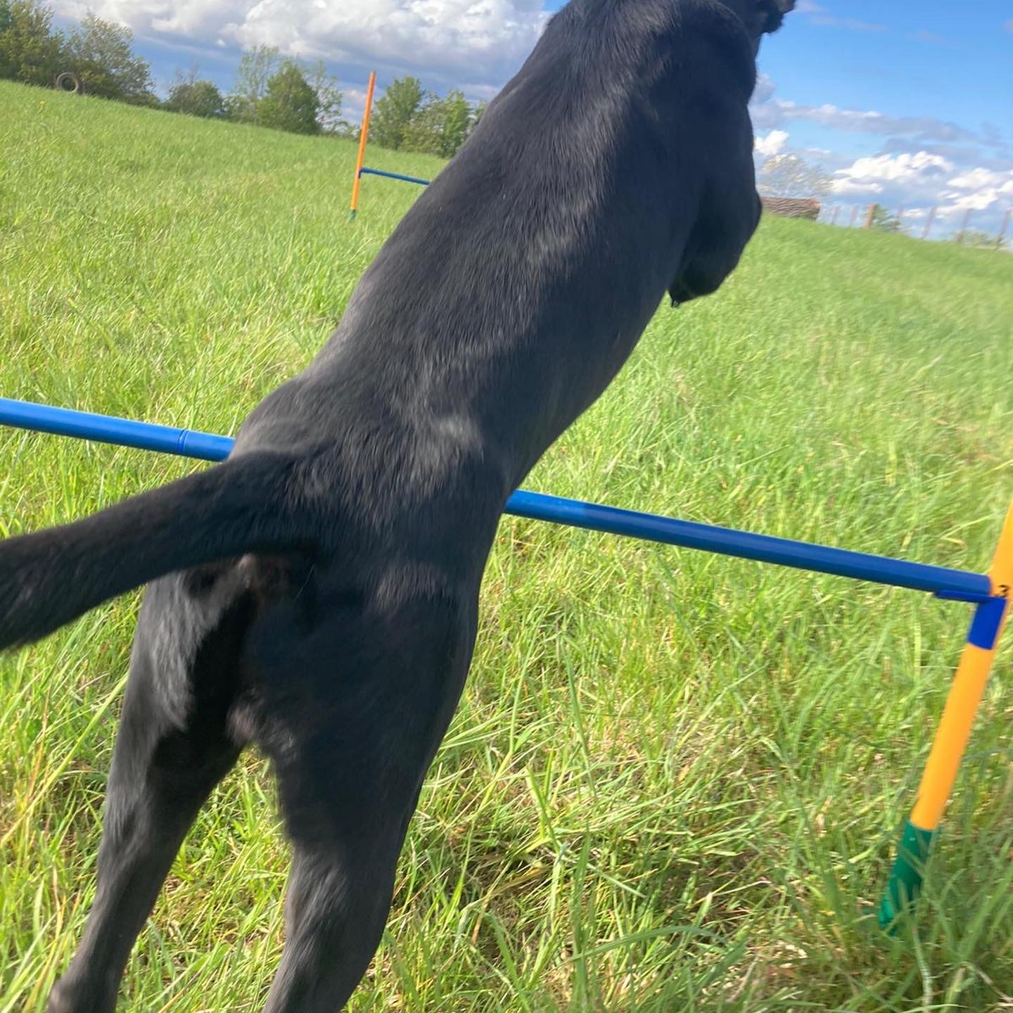 4.5 acre secure field. Fence is 6 foot high using Otter fencing, suitable for the smallest dog. Field is in a peaceful location with no main roads within a mile. Various bits of enrichment including; dog weaves, agility jumps, logs and tyres. A automatic water trough available for dogs drinking water. Parking is located next to gate so easy access and a secure dog tether post inside gate if required. A poo bin is provided and a under cover area (gazebo) for shelter if very warm or wet. Seating is also available for handlers. Dog walkers welcome as well as individuals or small groups.
