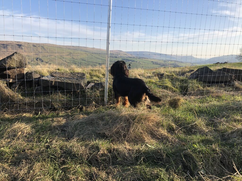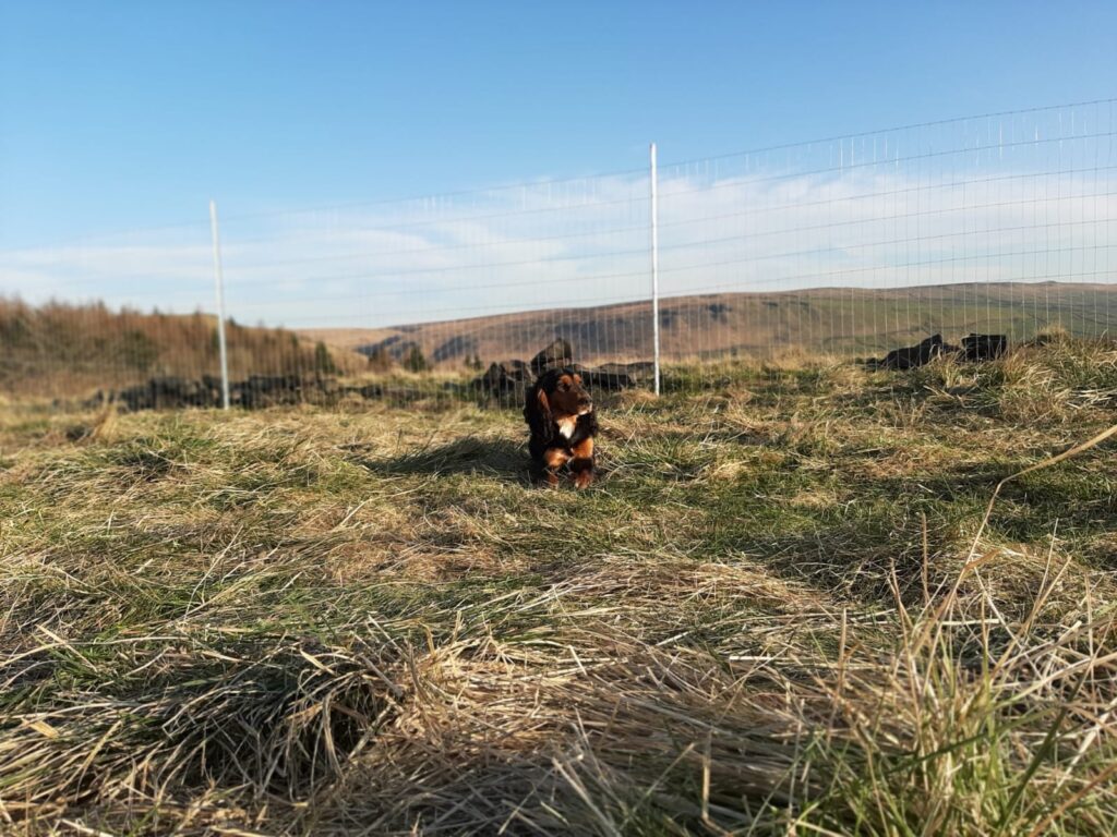 We have fenced the field with the 6 foot equine fencing as this has smaller holes towards the bottom. This makes it more secure for our doggy friends – even those who try to jump out or squeeze through!
