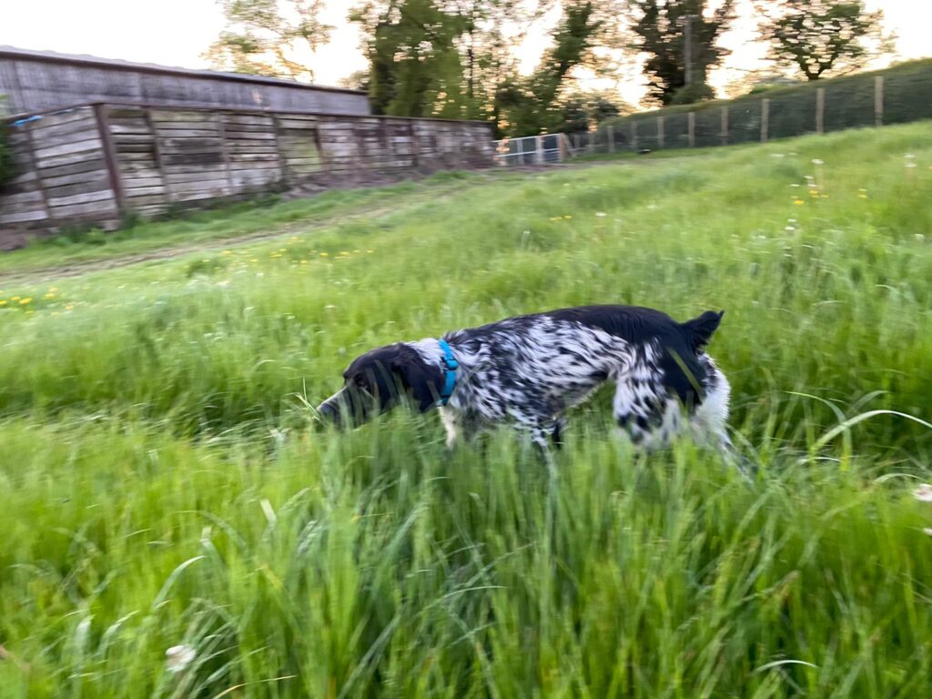 We didn’t want a manicured lawn dog field. This type of field would offer little interest or distraction for a high prey drive dog like Dexter. At just under an acre our dog field has a mixture of topped grass and areas of longer grass, left uncut, for lots of sniffing and scenting.