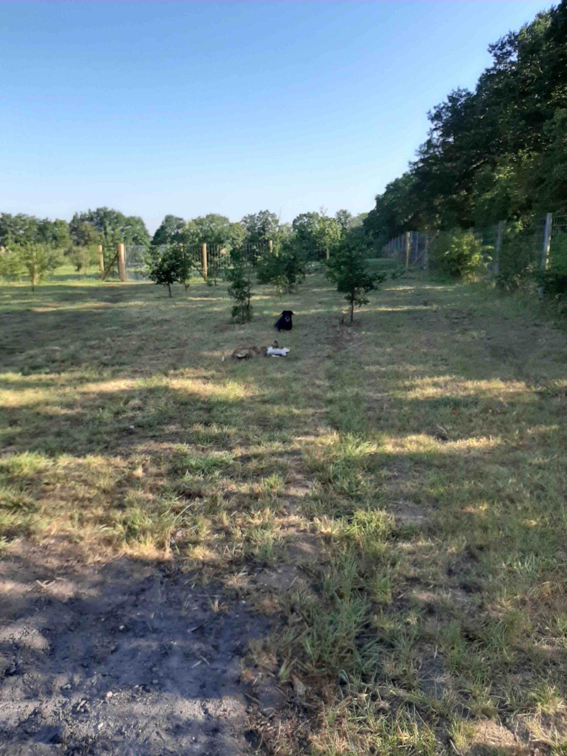 The fences are 6 foot high deer fencing, with rabbit mesh on the bottom half. This has been dug into the ground to deter rabbits getting in, and your dogs digging out to freedom!!