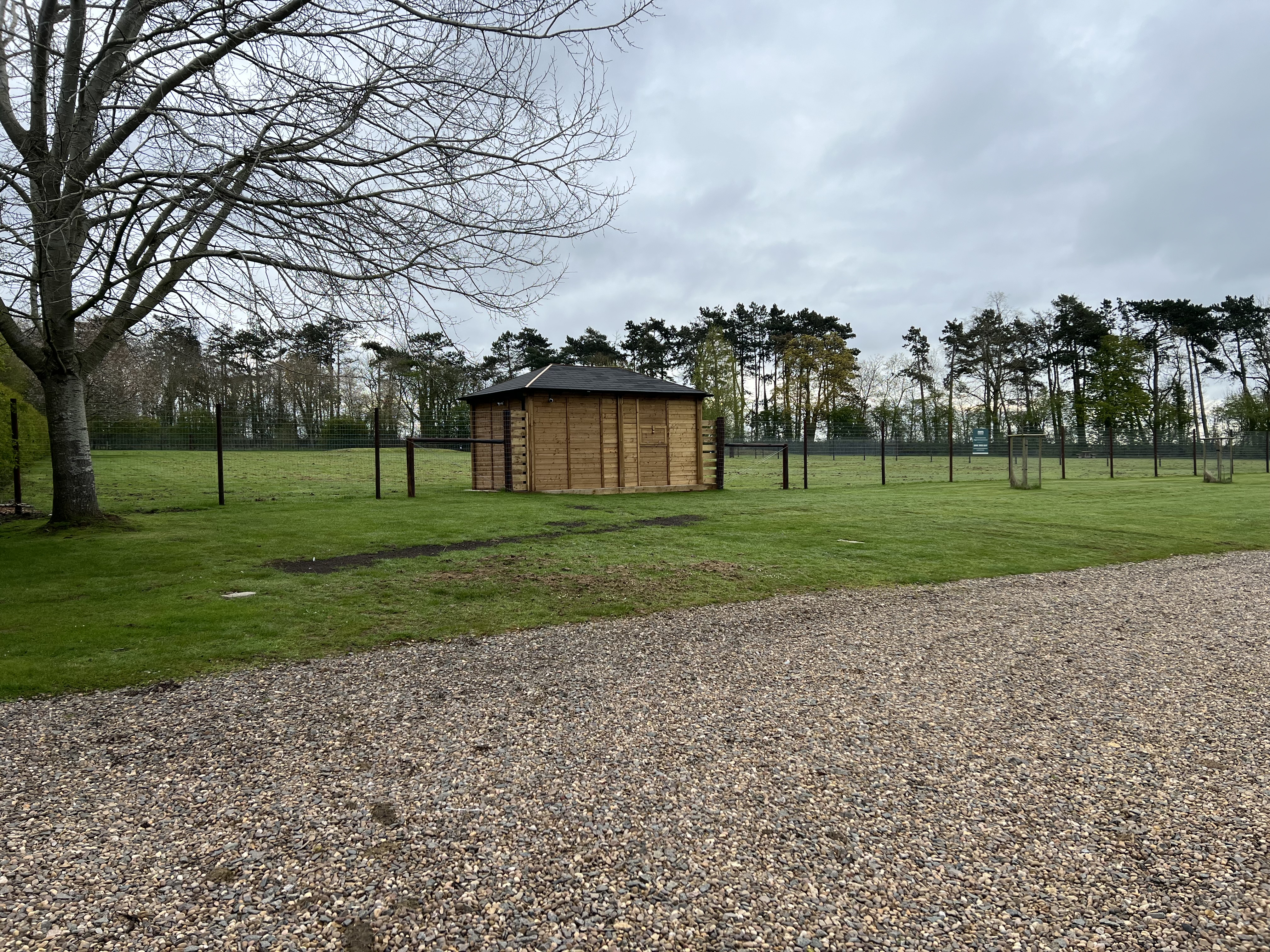 Paws in the Park, Burrough Court is a secure 2-acre dog park, with a large open grassland area bordered by mature woodland for your dogs to run wild and free. Enclosed with a 6 ft fence, a shelter (with wi-fi), play features, toys, a gated car park and paw wash station, you can even have a coffee and food delivered direct via the hatch from the coffee shop.