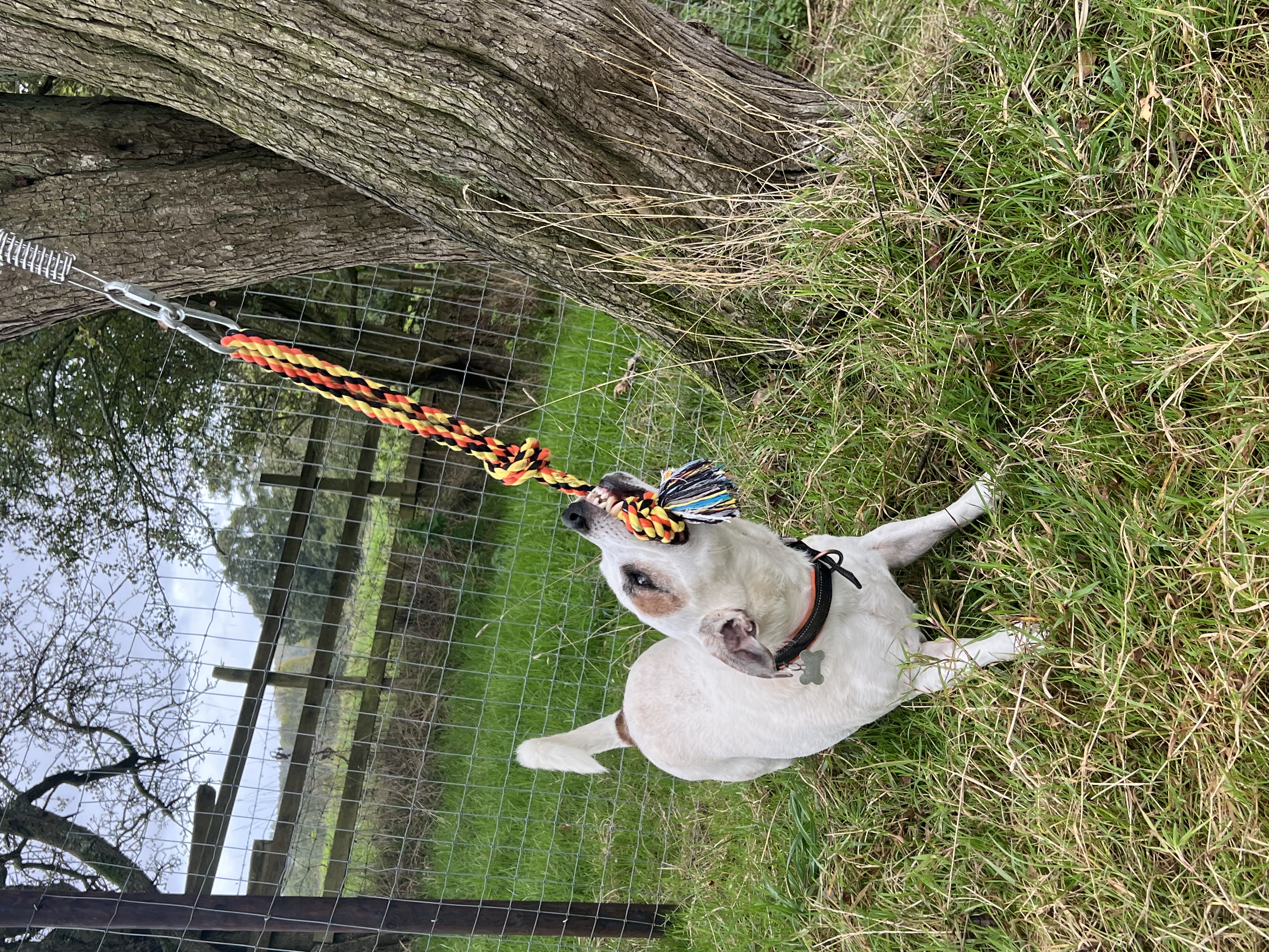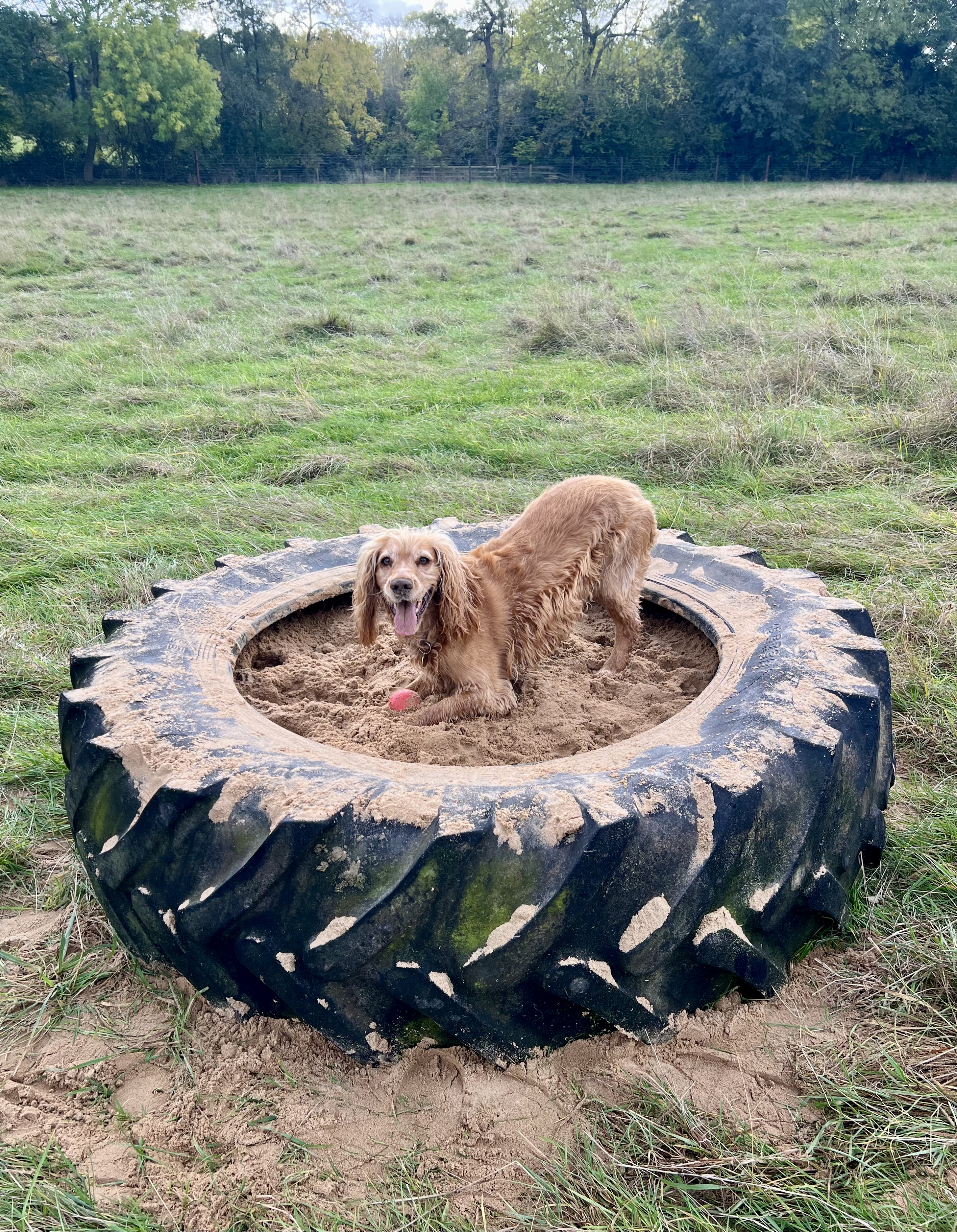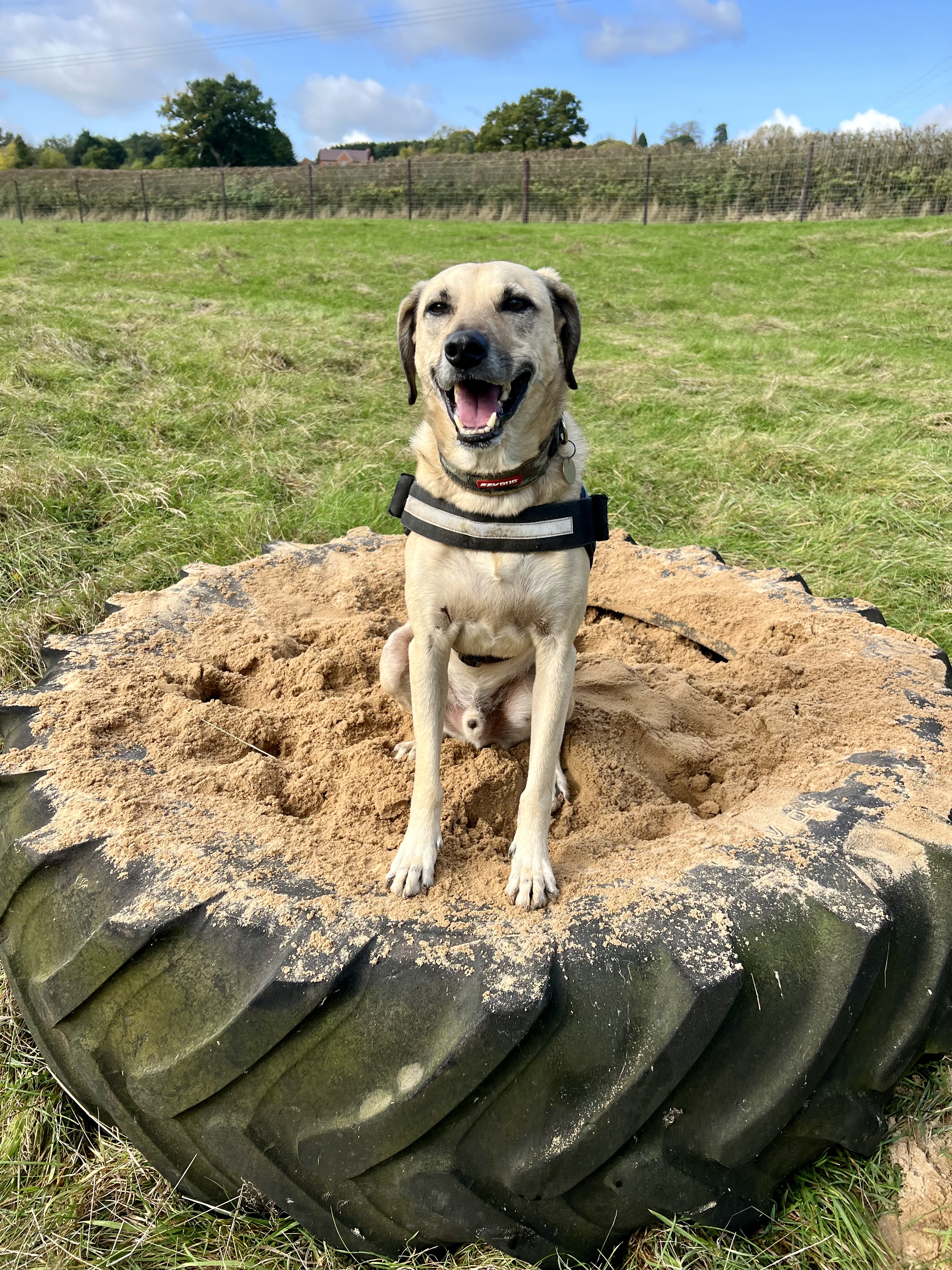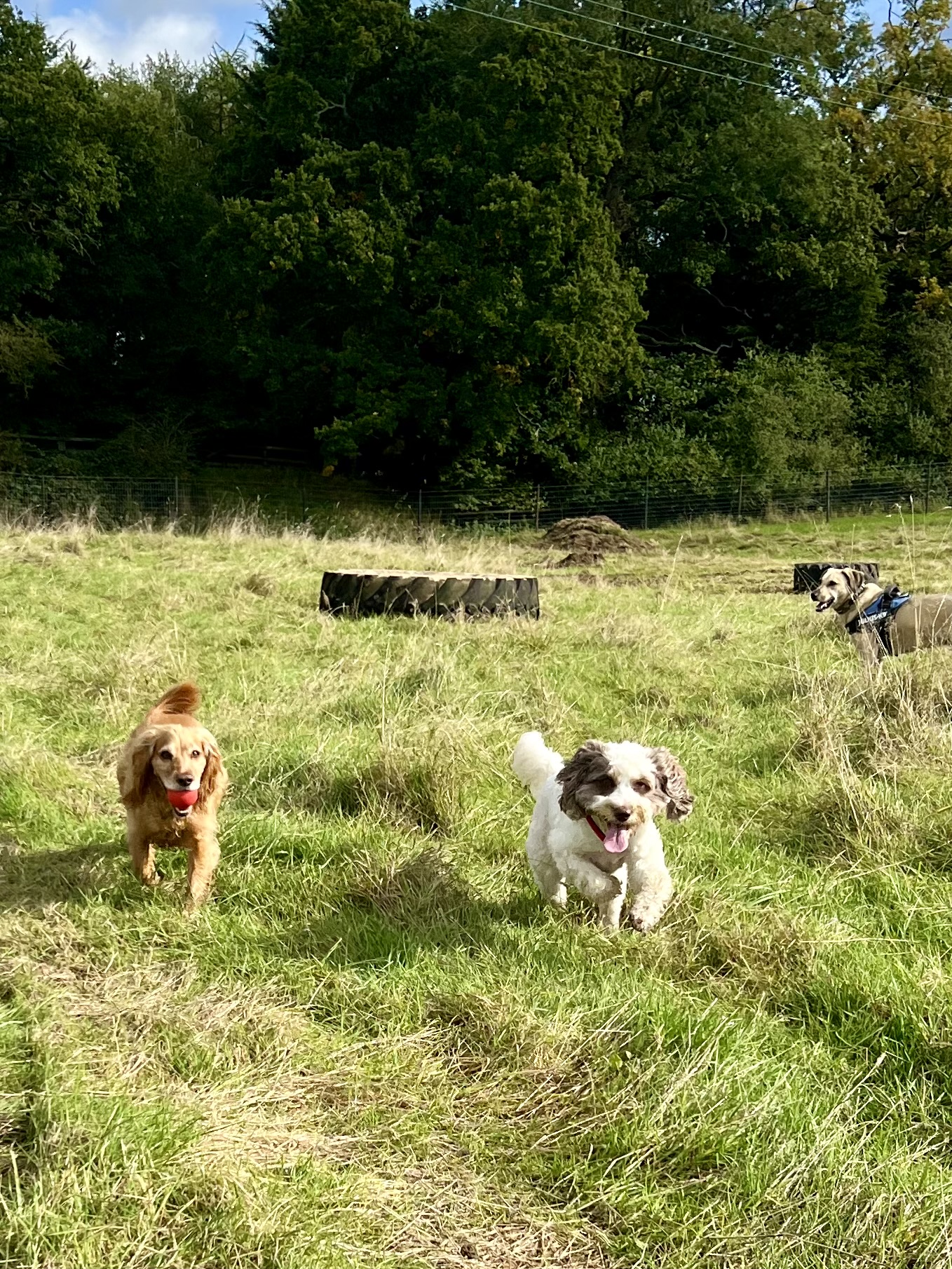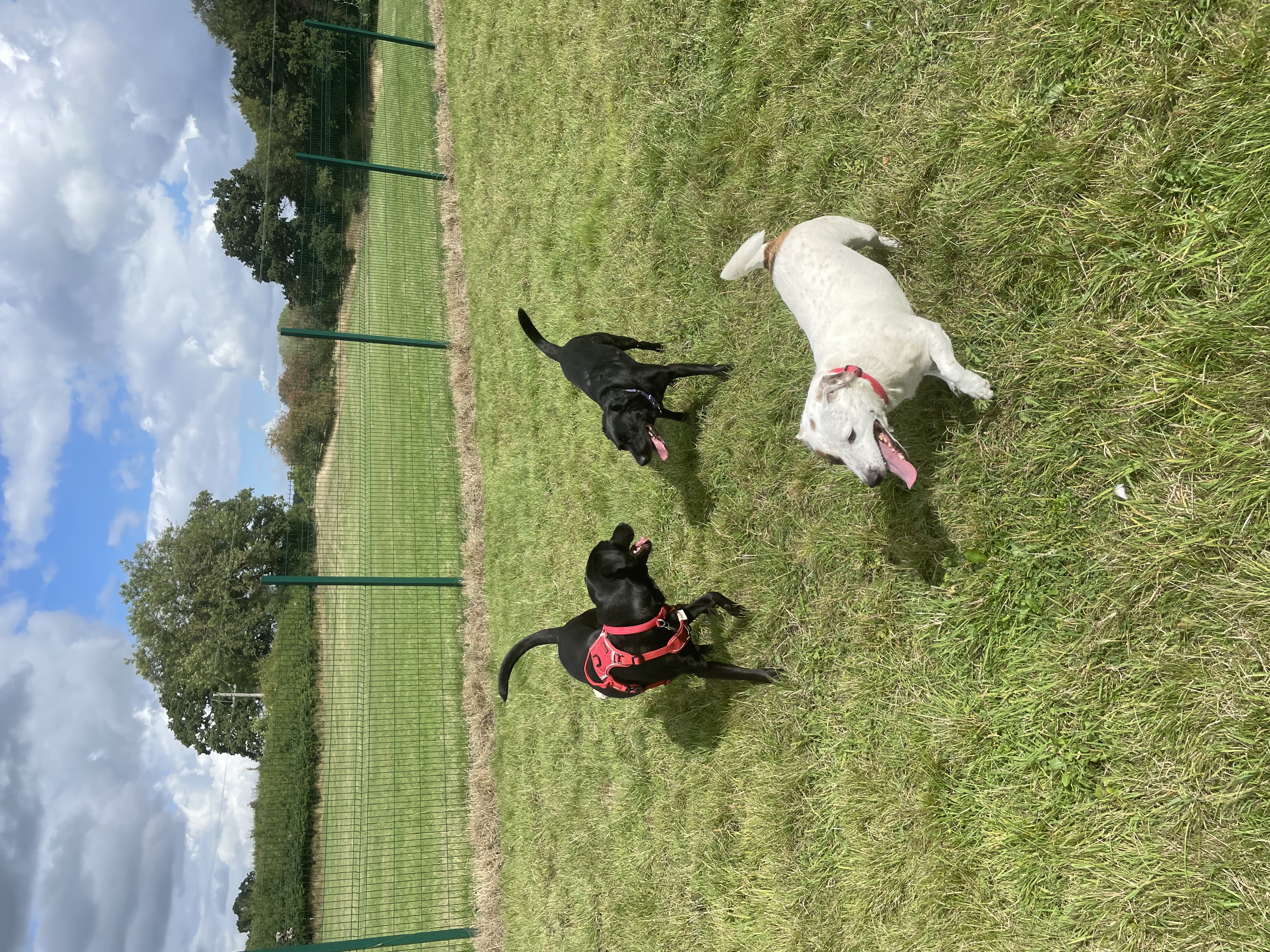 Paws & Play Secure Dog Field is a 3.5 acre fully secured space in the beautiful Warwickshire countryside. The field is accessed via an automatic gate with coded entrance which leads to a hard standing car park for 4 vehicles. The large field contains a large tyre sand pit, bungee rope, large picnic bench, tyre hoop and plenty of balls to play fetch with. There is also a separate fully fenced agility area which is equipped with another large tyre sand pit, slalom poles, jumps, boardwalk and A frame