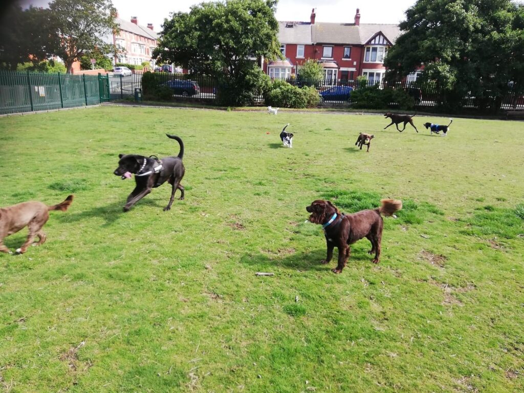 Revoe Dog Park is a dog exercise area within Revoe Park just off Queen Victoria Road, Blackpool. The area is a disused bowling green with a size of around 40 m by 50 m. It has high fences and two gates making it secure for dogs to be off lead.
