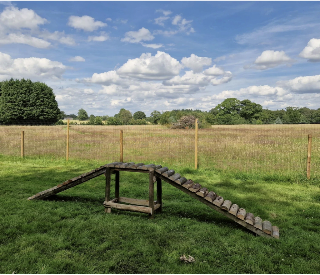 About the size of a football pitch, this is a fully enclosed private forest getaway. With its own doggy dipping pond, sandpit, enrichments, custom agility equipment & pawrent lounge area – it’s ideal for regular exercise sessions or for pup socials with friends, or longer stays using it as a base to explore all the doggy activities & pup friendly pubs in the area.