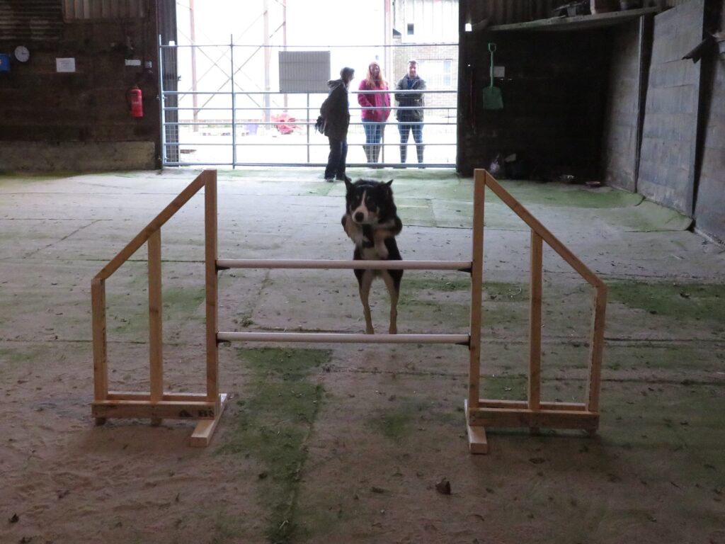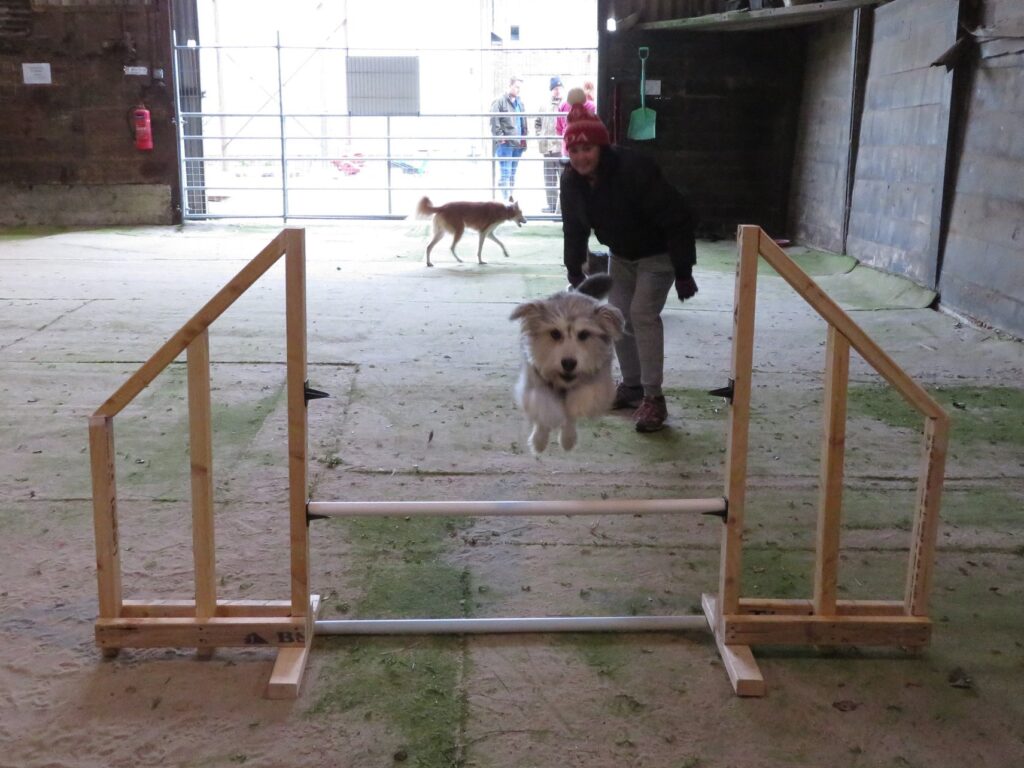 20x30m fully enclosed barn with AstroTurf throughout. The barn has a ball pit, tunnels, seesaw and a variety of jumps.Â