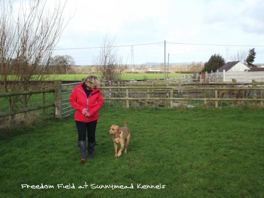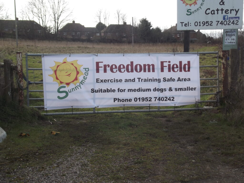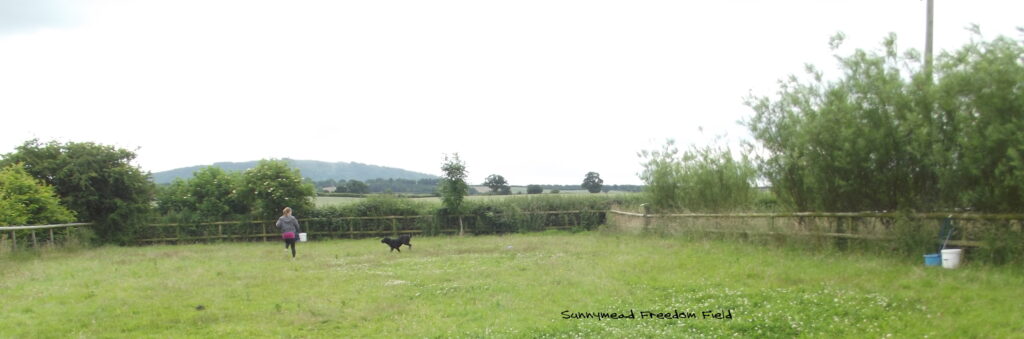 Sunnymead Freedom Field is an opportunity for you to exercise, train or play with your dog or dogs on or off lead, without muzzle, without fear of conflict with strange dogs, no diversions, no traffic, no sheep and no cows. Your dog can run to its heart’s content without going out of sight. Sunnymead Freedom Field is the ideal place to train your new puppy or rescue dog, to work on your dog’s recall, improve and upgrade his training, etc. It is also a place to enjoy playing with your dog and share his joy as he runs free.