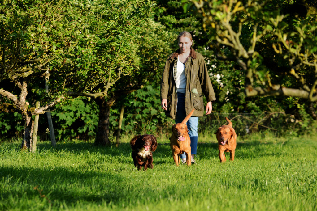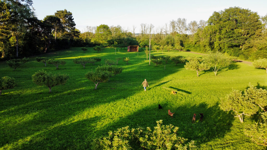 Secure and private dog walking field set amongst our beautiful 60 year old apple orchard. A 1.8 metre fence encloses the field meaning your dog can run free off the lead with no worry of them escaping. A spacious shelter, picnic benches, agility equipment, water supply and dog poo bags/bins are all free to use within the field. Available for hourly hire.