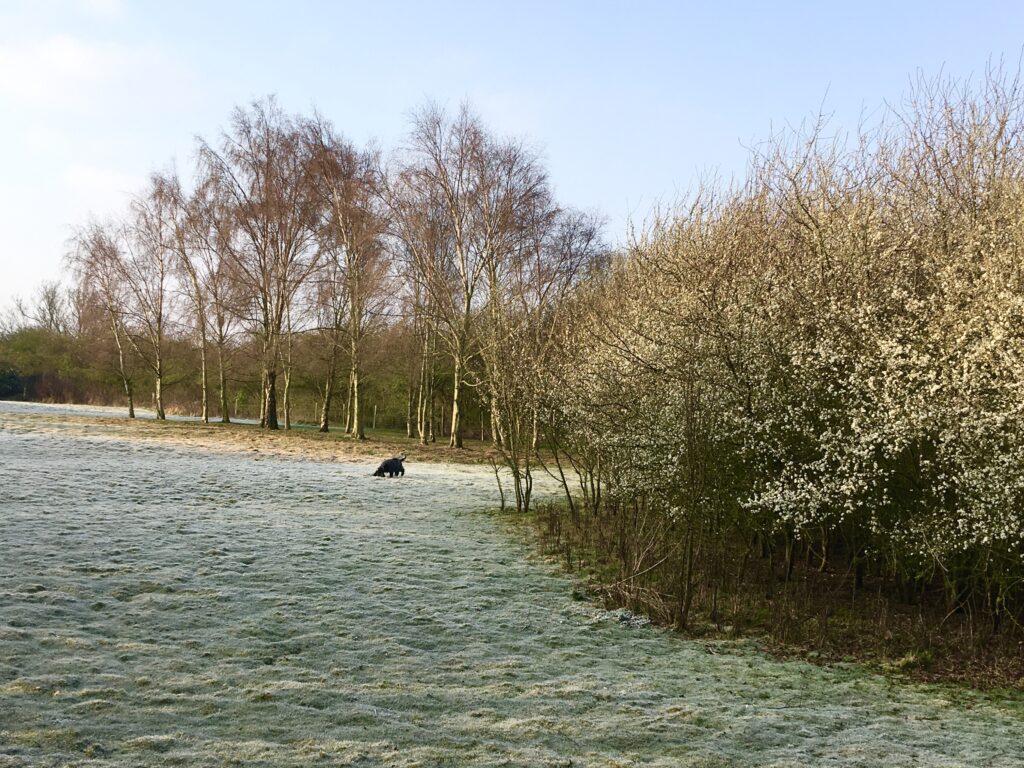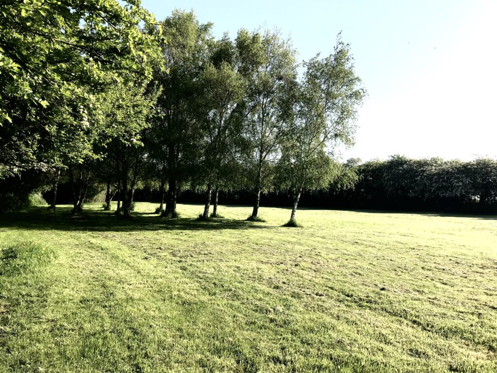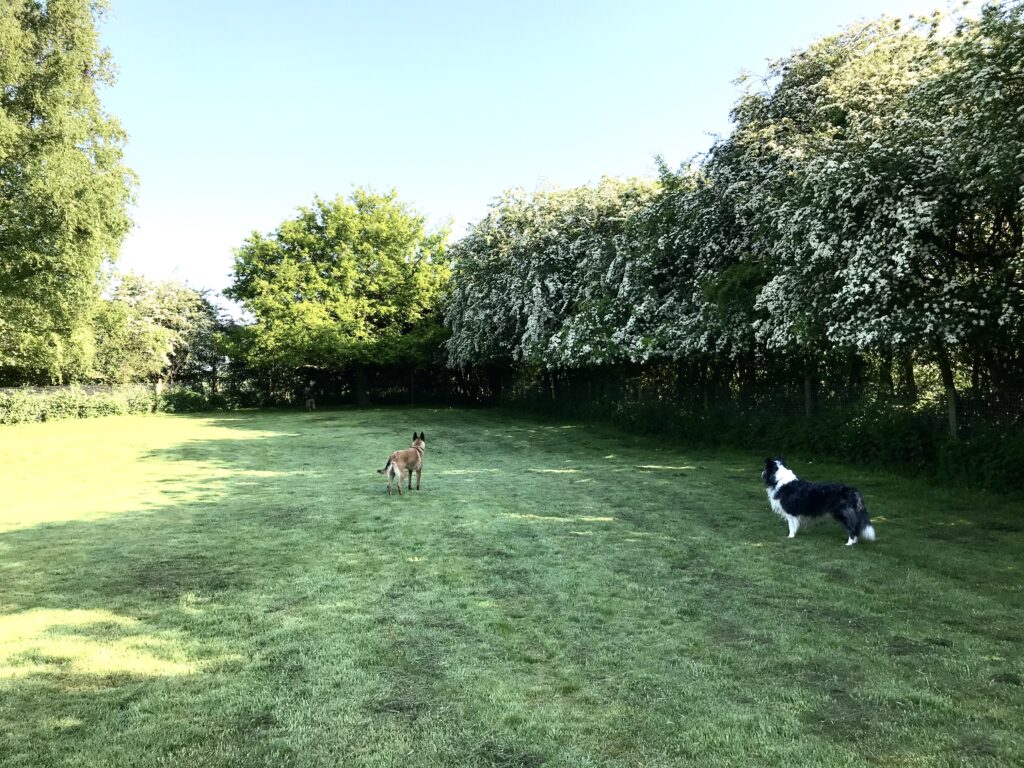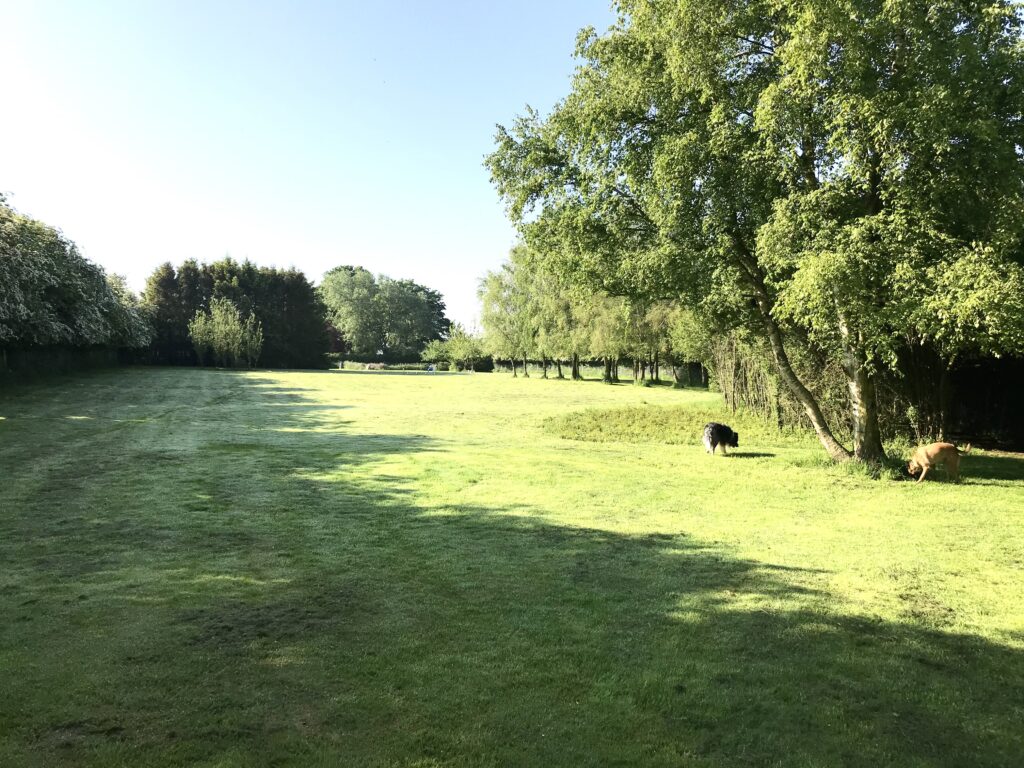 Newly fenced with 2″ square wire mesh, plus 15ft hedging behind and 8ft dyke.