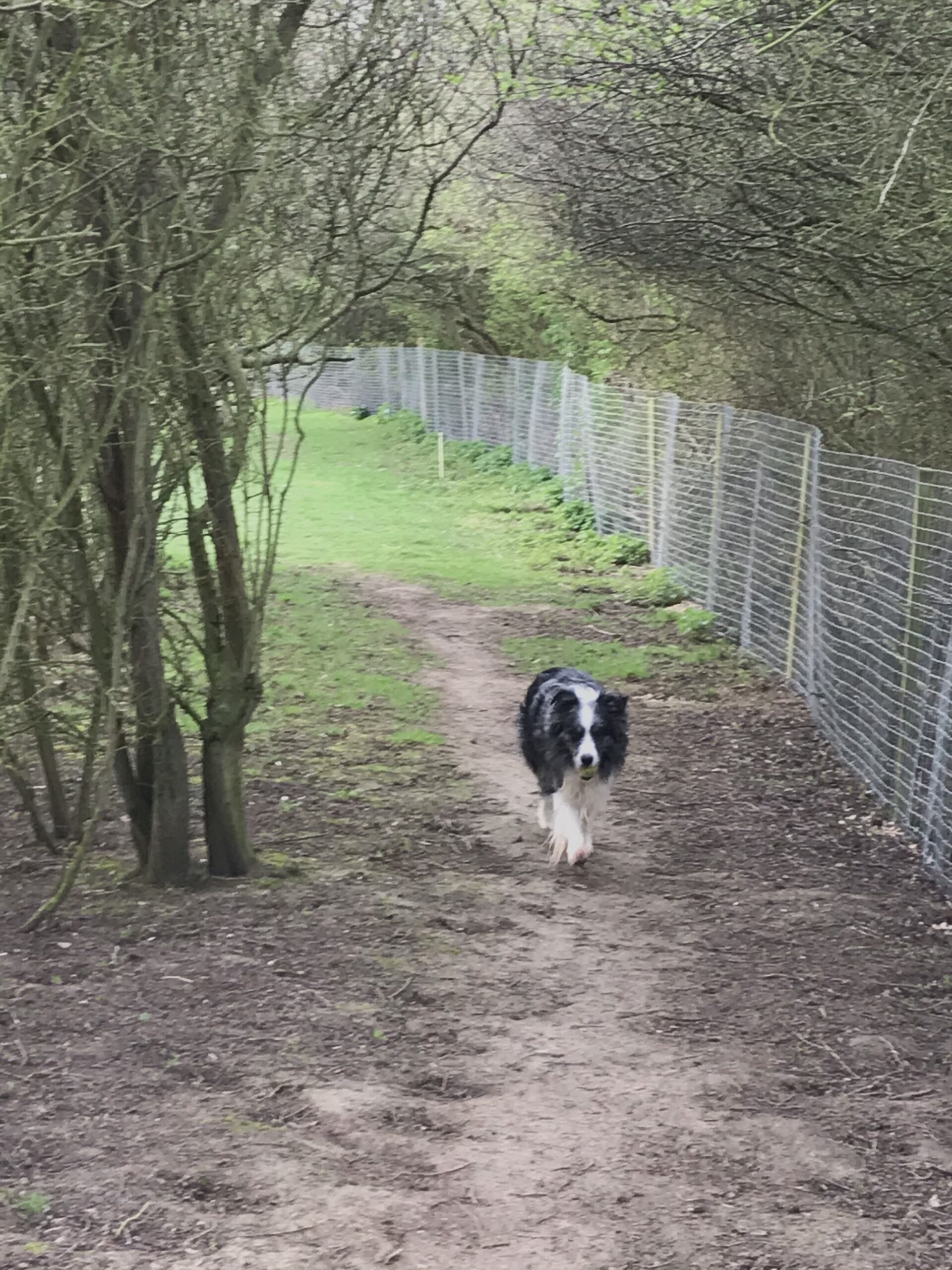 Completely out of sight of roads, houses, paths and other dog walkers.