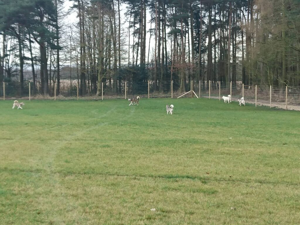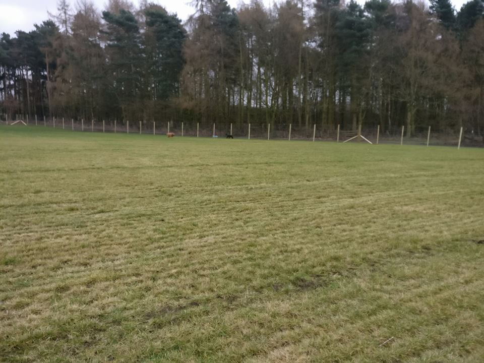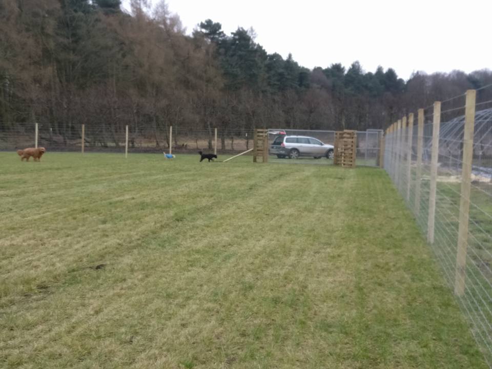 We offer a 2 acre grass field, enclosed by a 6ft high wire fence, all the way around. There is an airlock type, double gated area for access on foot or if you prefer, you can drive your car into the paddock through the large gate, then close the gate behind you before releasing your dogs.