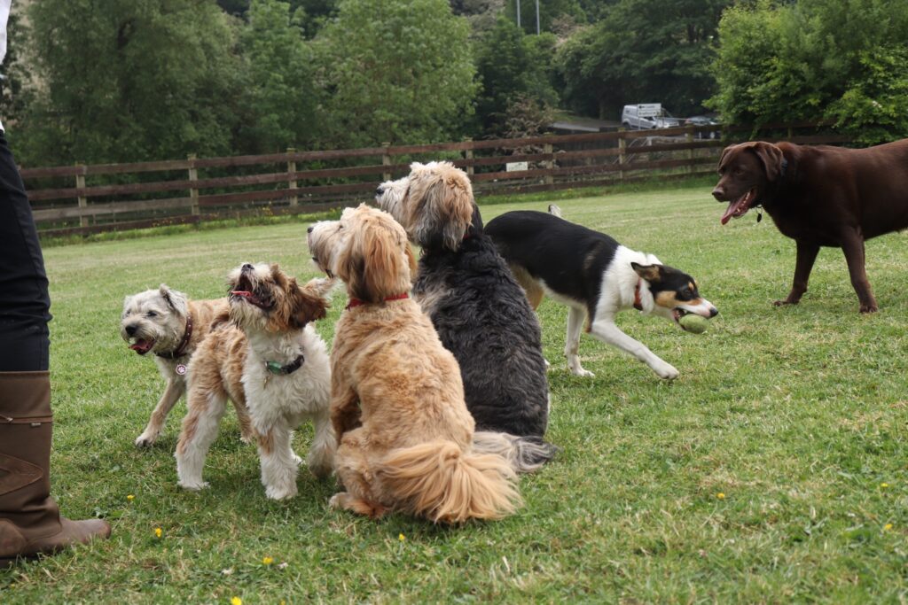 We have an Acre of beautiful lawned field, offering secure and safe off lead Exercise area. We also have agility poles Tunnel and jumps. With the hot weather we have a dipping pool. Fresh drinking water for every customers dogs and a picnic table to relax at whilst watching your dogs having fun.