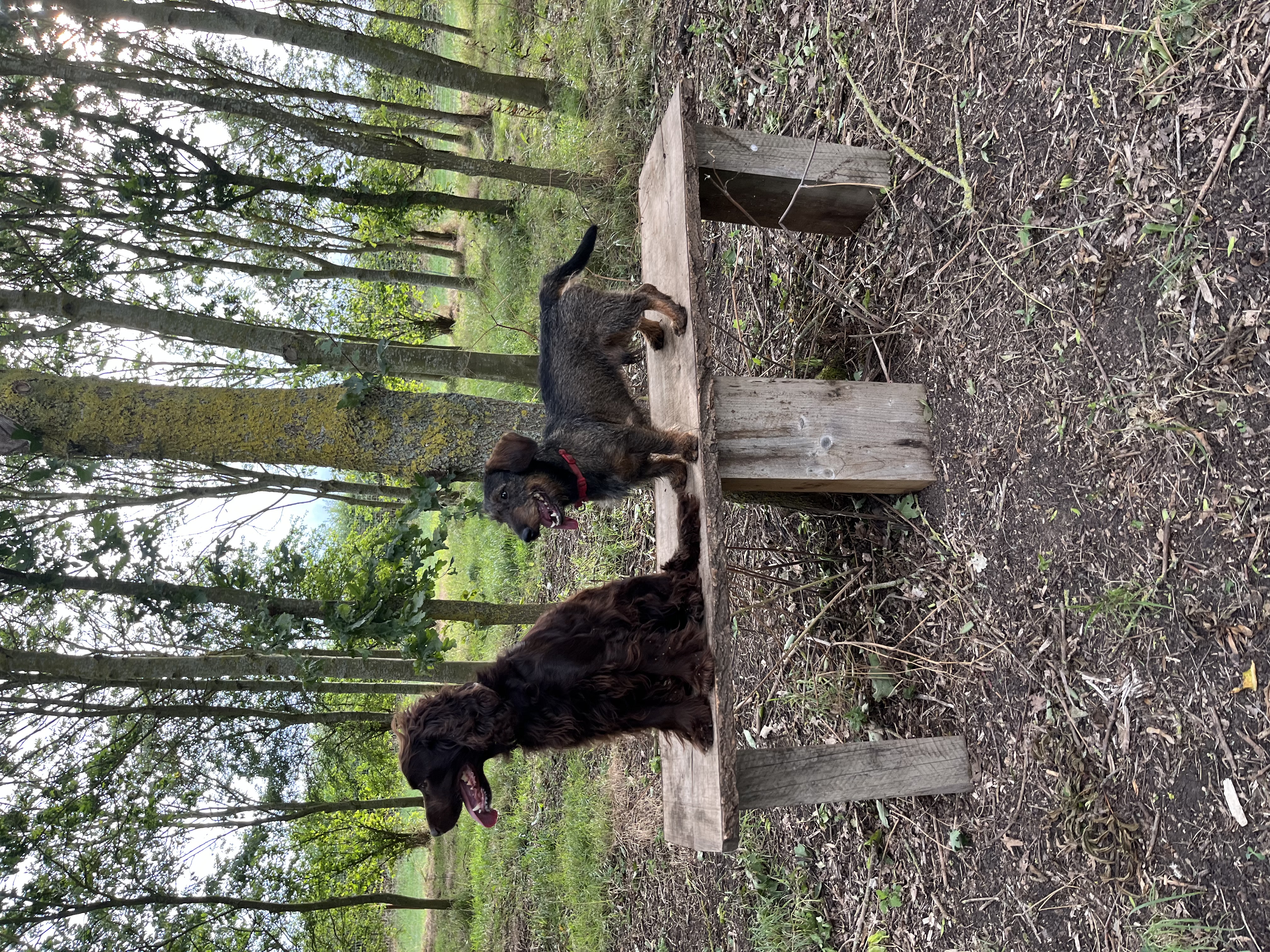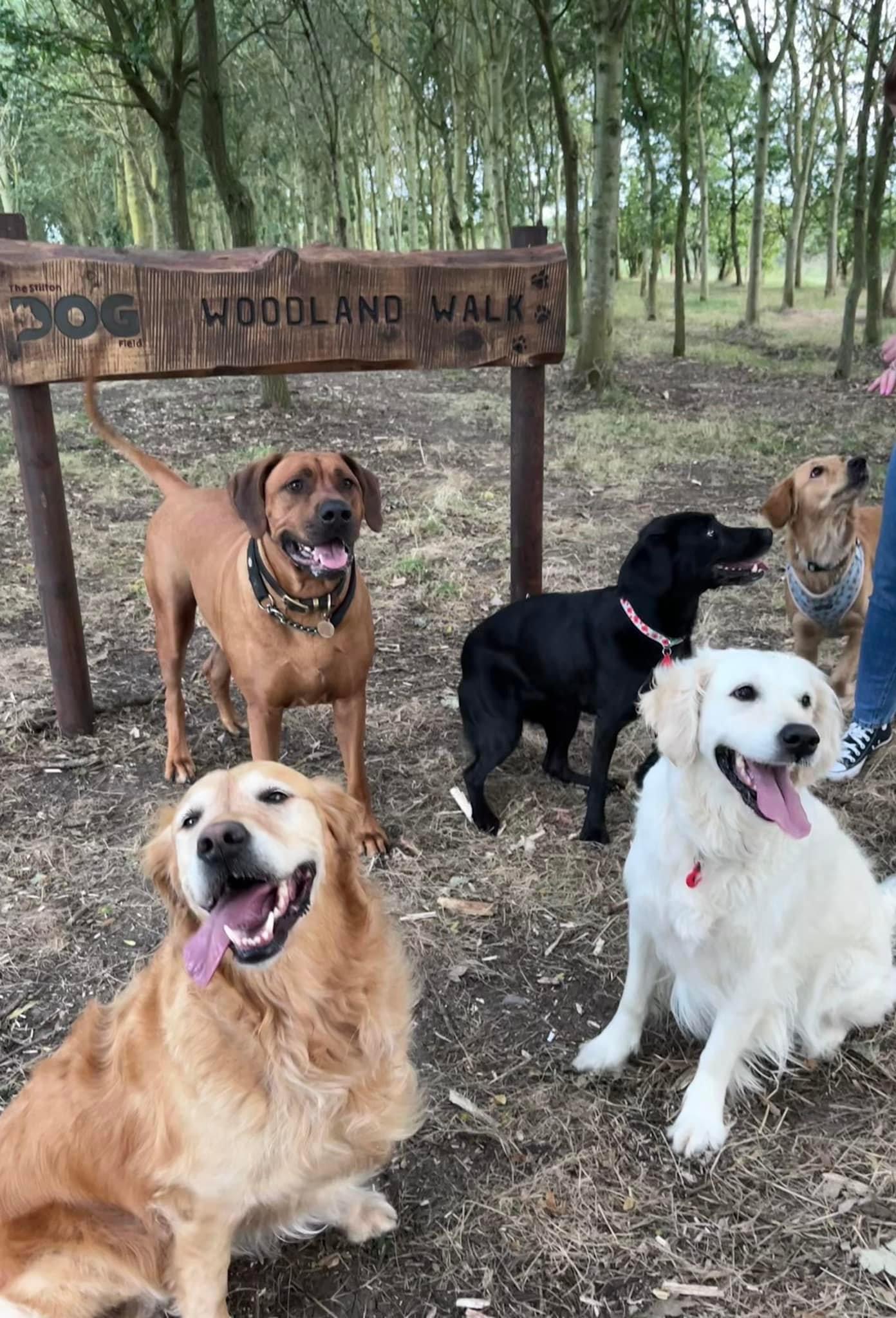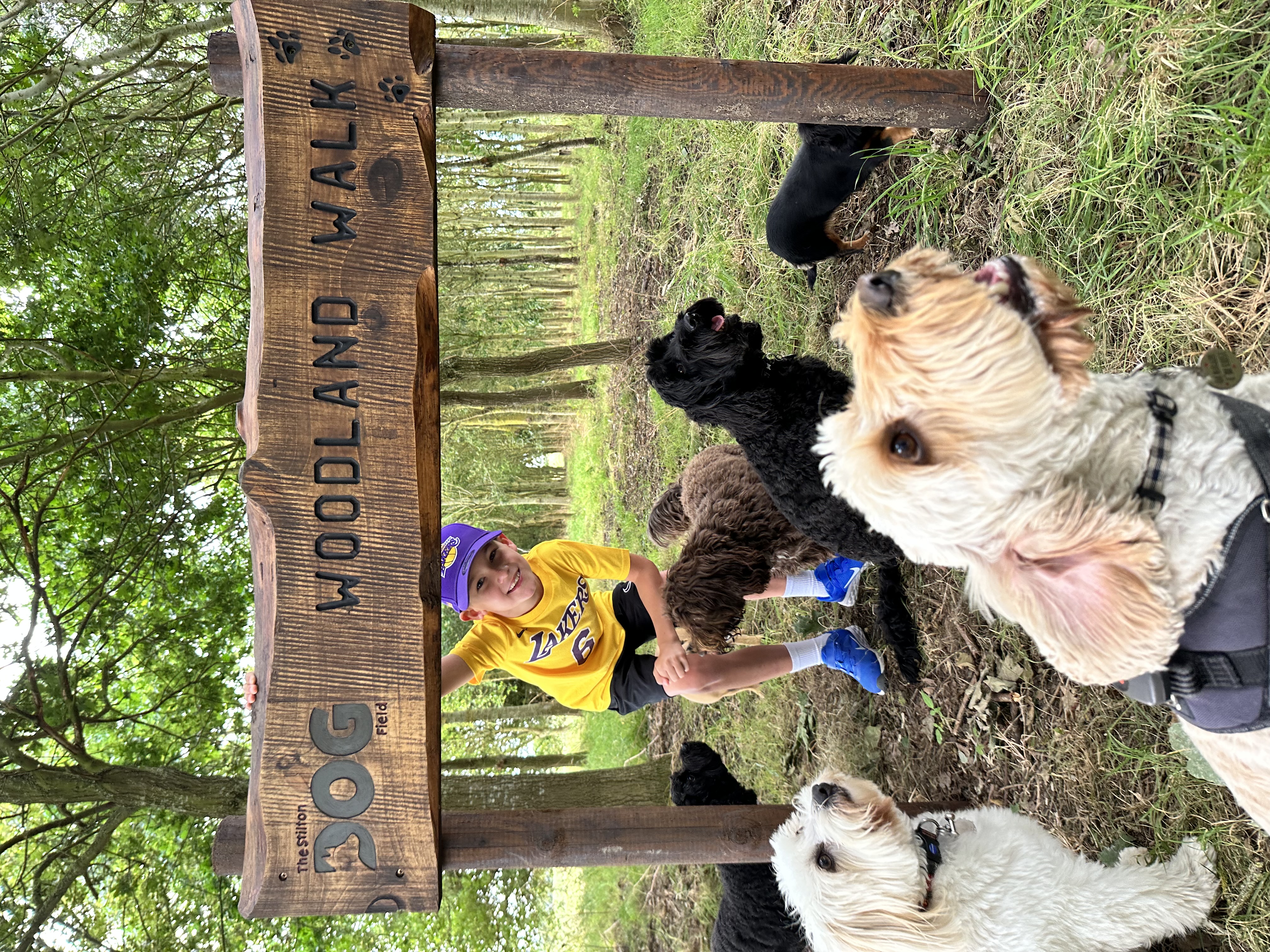 Park in our enclosed carpark, set on our family farm. Enter a fully enclosed walkway which will take you 300m to a gate where you will enter our secure woodland walk. There are a few obstacles in the wood but dogs just love the running and sniffing our woodland gives them.