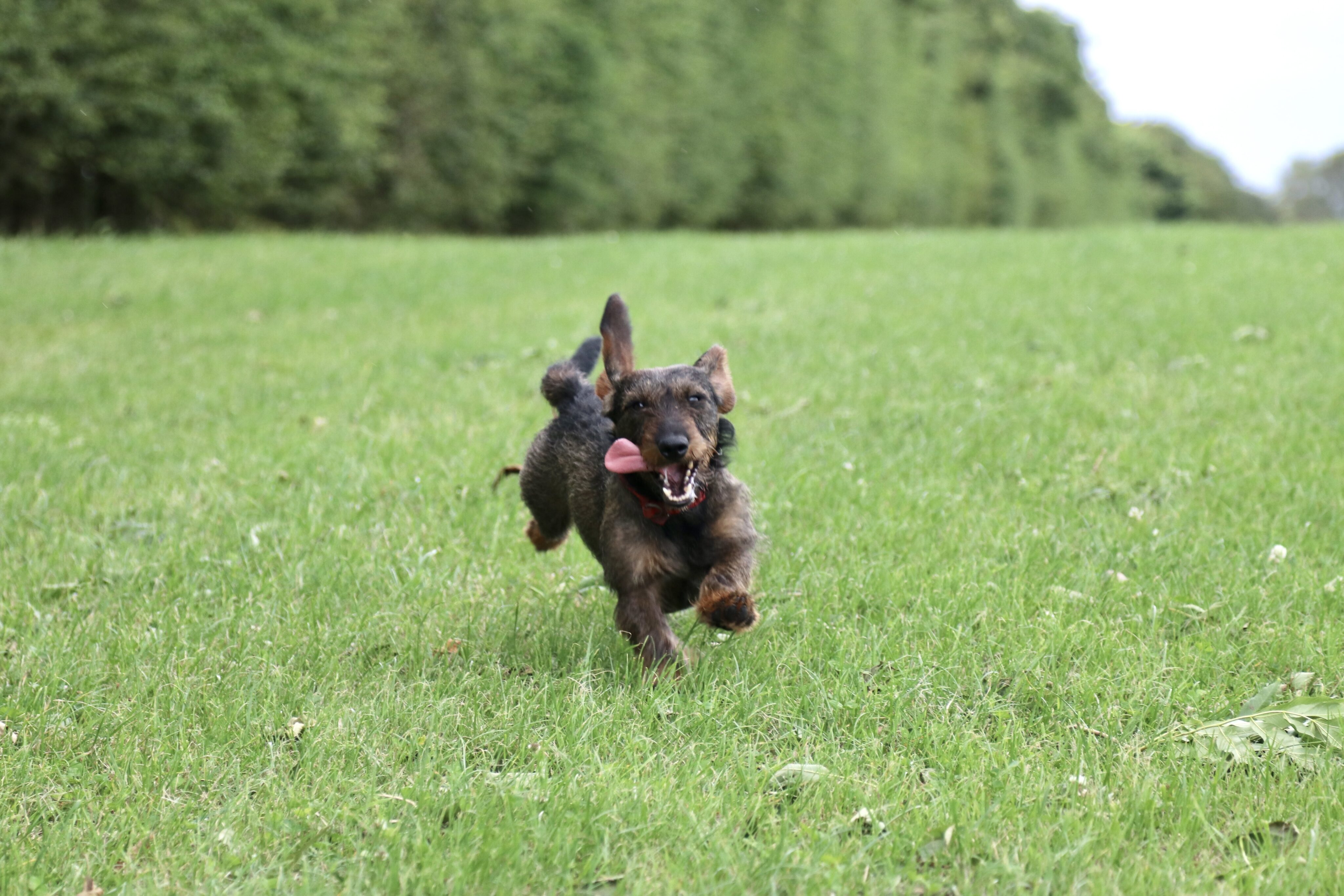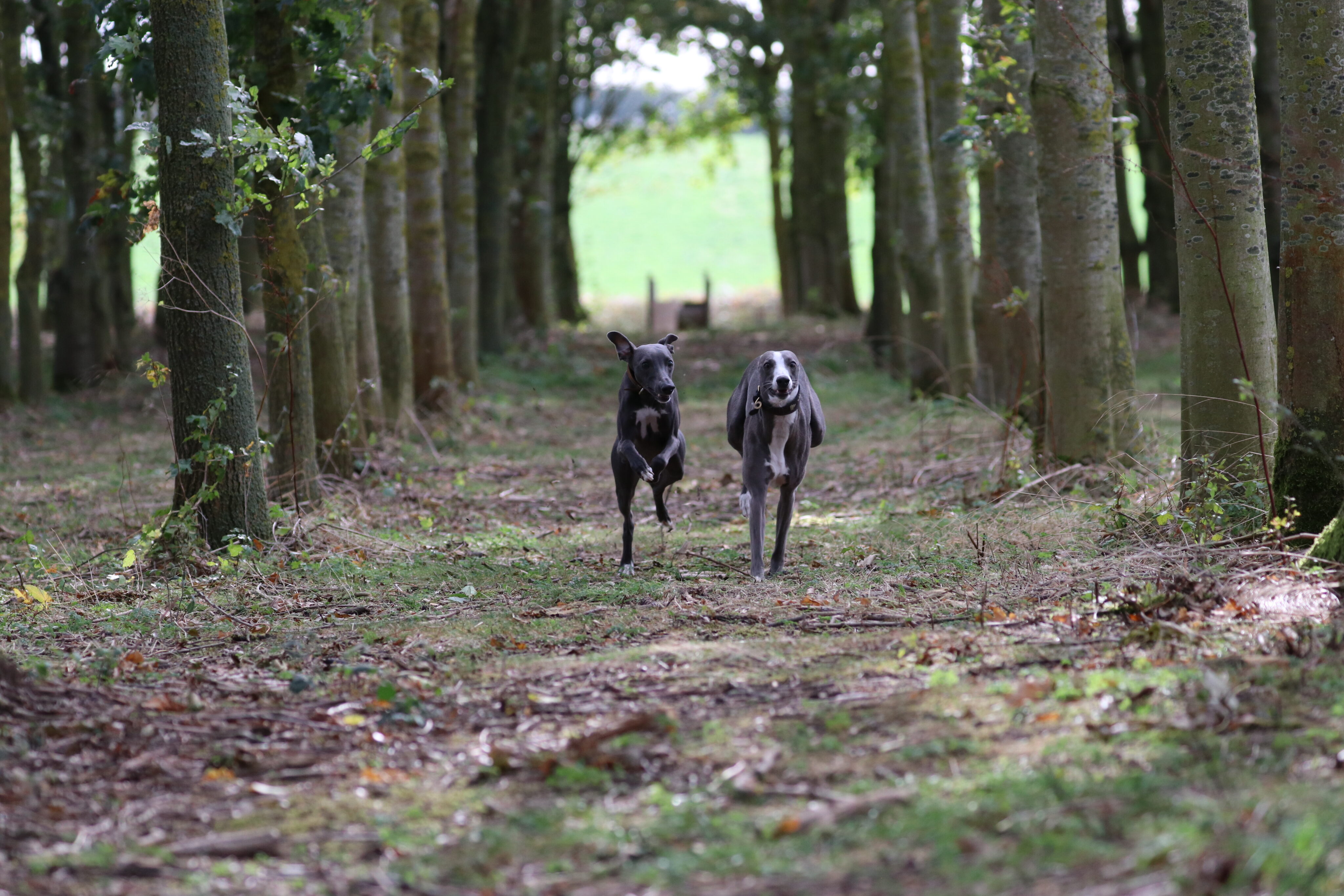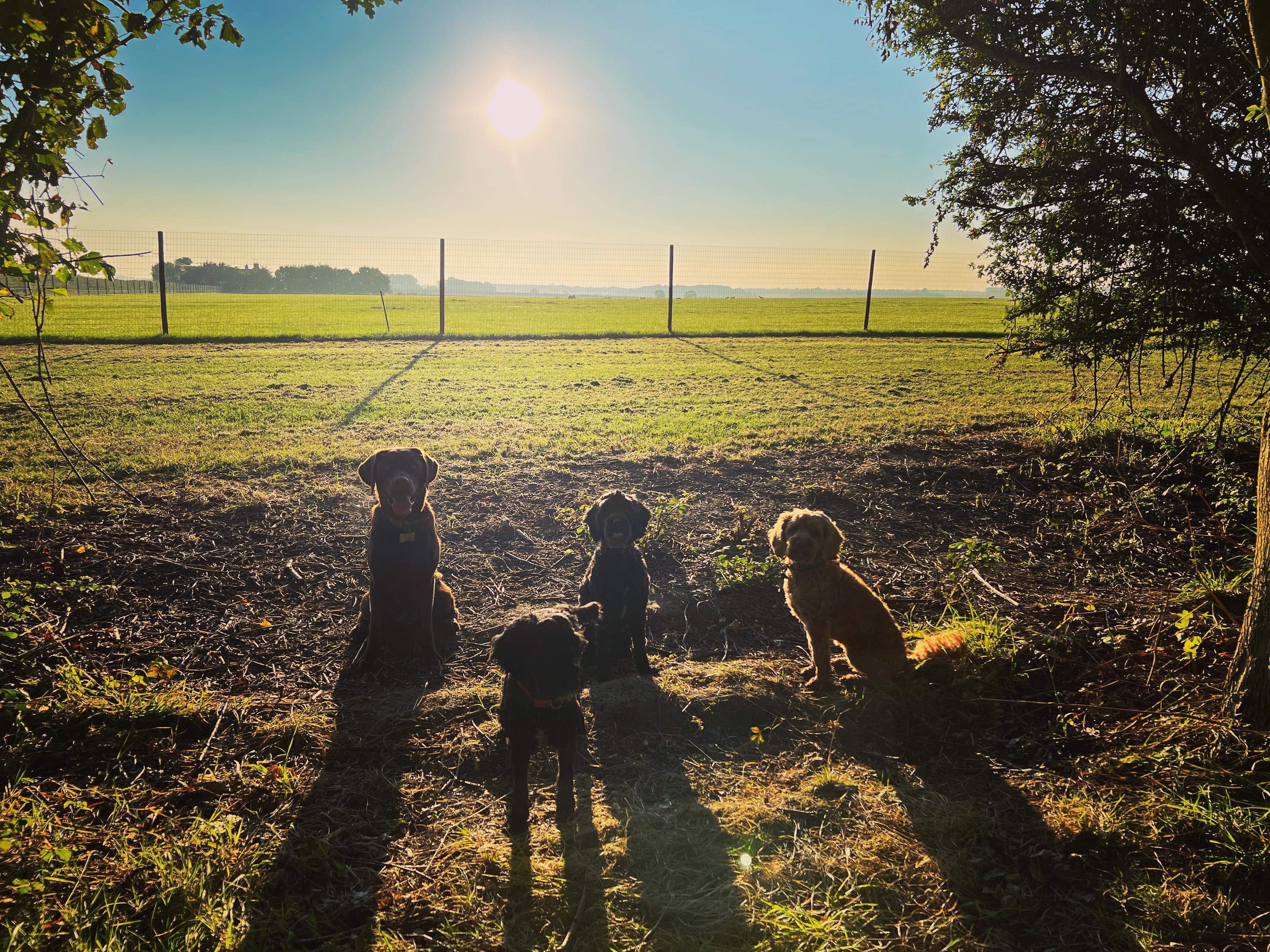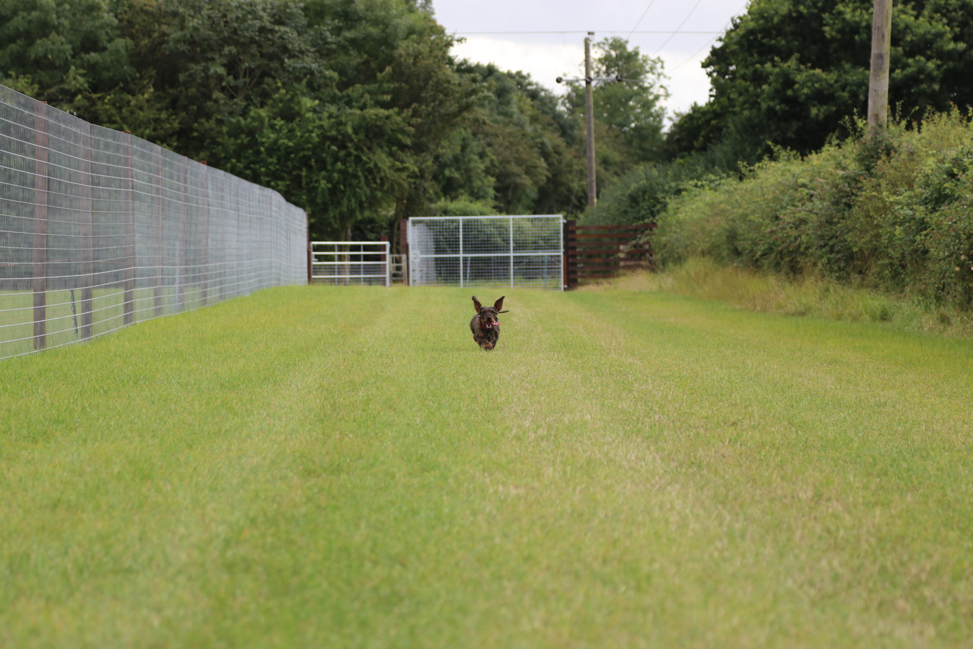 Several acres of fully enclosed private woodland with grass areas for runs too.