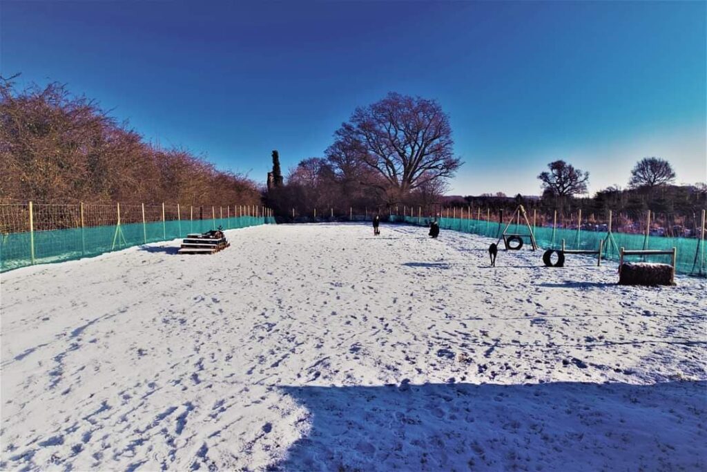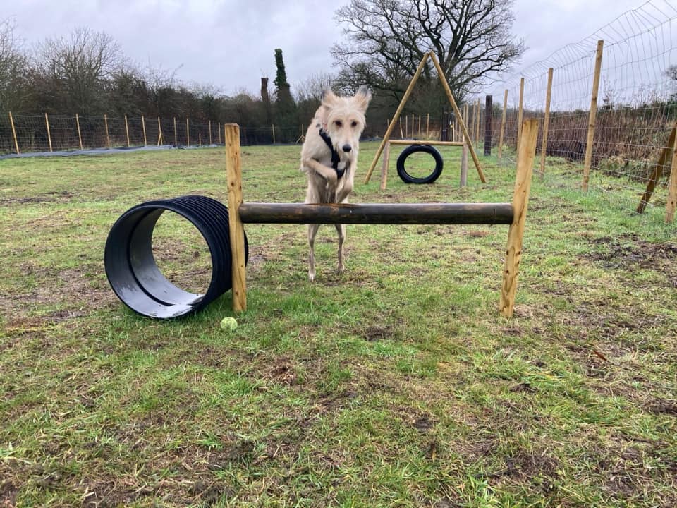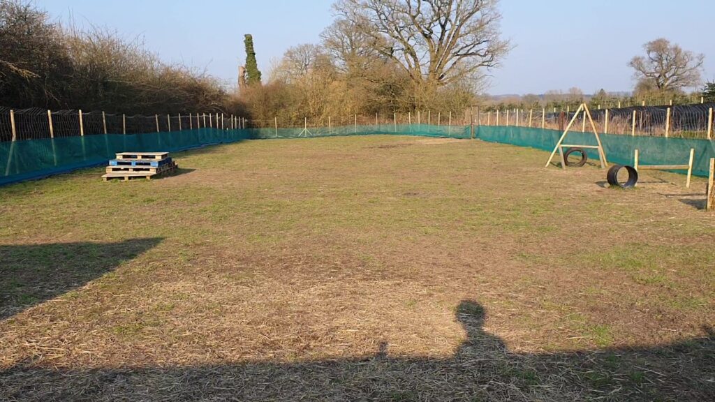 SECURE – Both of the play areas within Towpath Tails Dog Park are secure spaces available for private individual hire as well as for dog training and events. Both The Paddock and The Coppice have secure 6ft deer fencing all around the field pegged to the ground, with additional rabbit fencing around the bottom and both have various forms of additional screening. Both play areas have access to the secure gated car park from which there is then a further locked secure gate into the respective play area. Both The Paddock and The Coppice then each have a further access gate fenced to 6ft high with low level rabbit fencing for double security.
