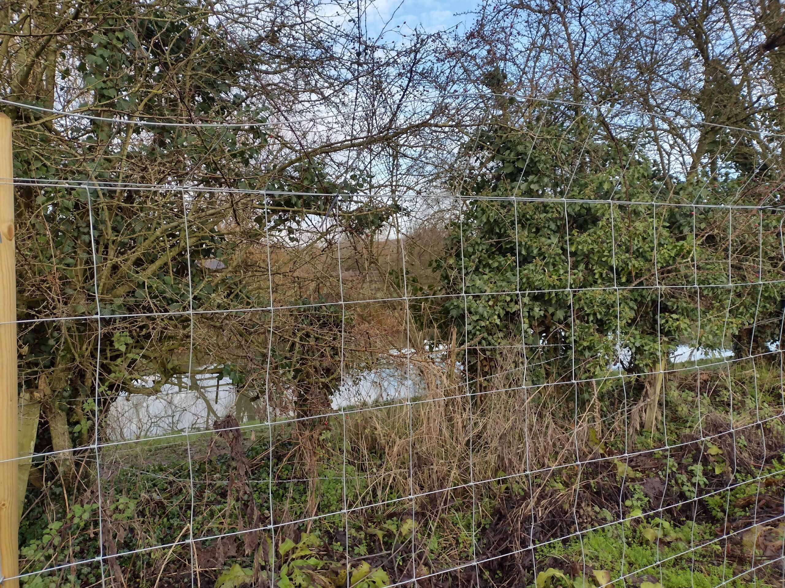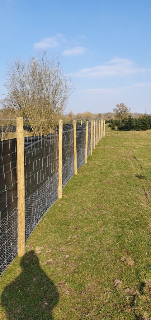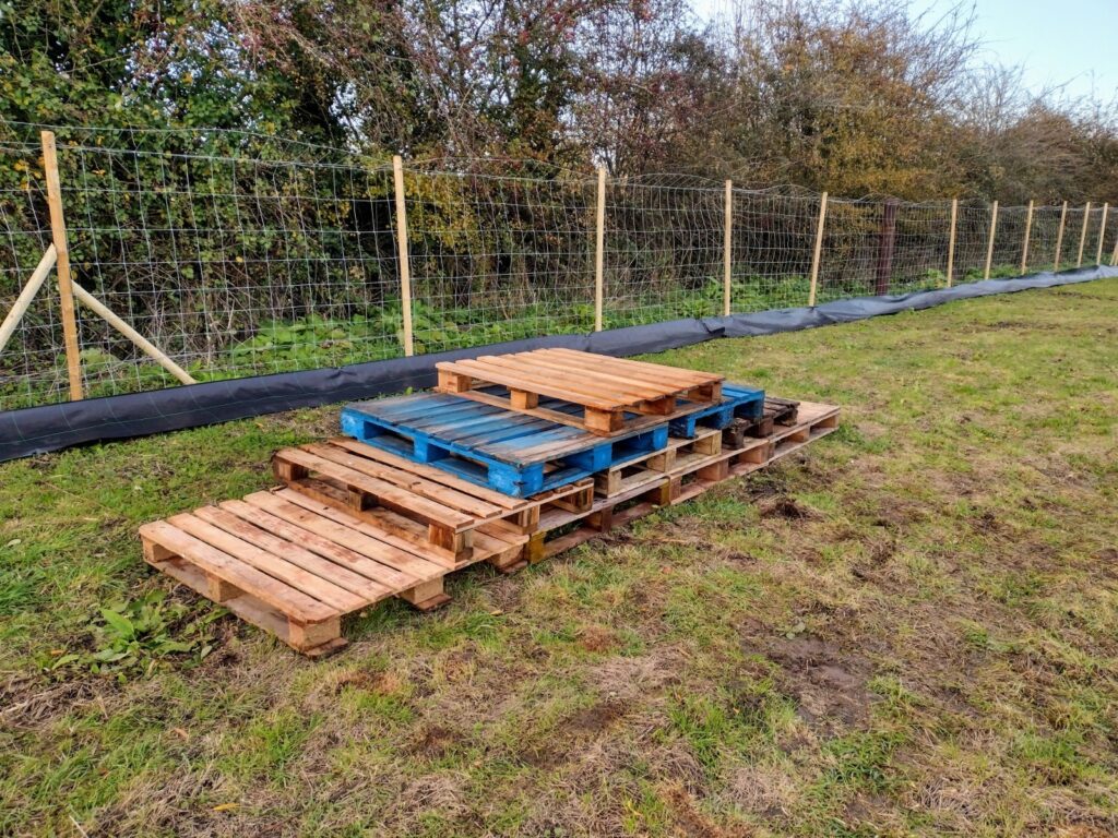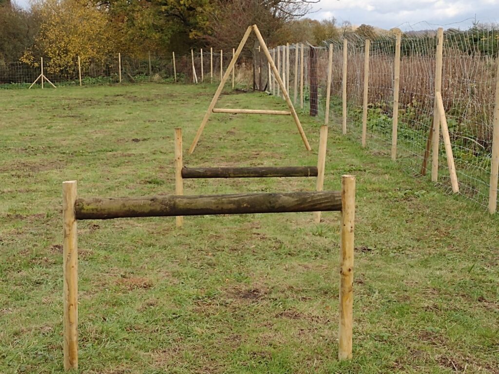 Our dog exercise areas are both securely fenced with 6’ft high tensile fencing – for keeping the ‘jumpers’ safe; and low rabbit fencing for keeping the ‘diggers’ in. Â