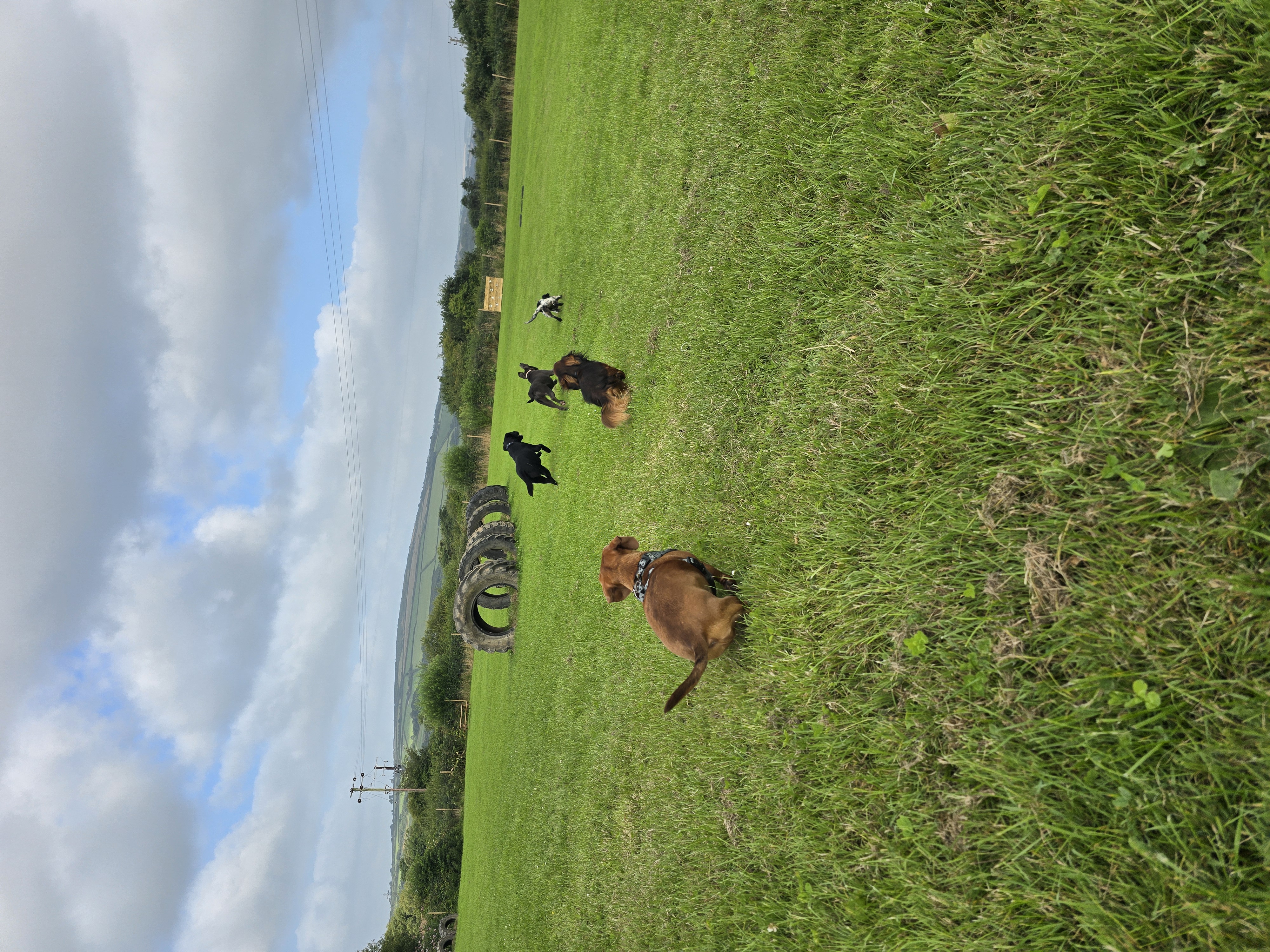 Fully enclosed 2 acre dog park located just outside of Roche near Cornwall Services! A field full of fun and enrichment for your dogs. Water available on site, agility equipment, scent wall, large car park, no extra charges for more dogs OR cars.