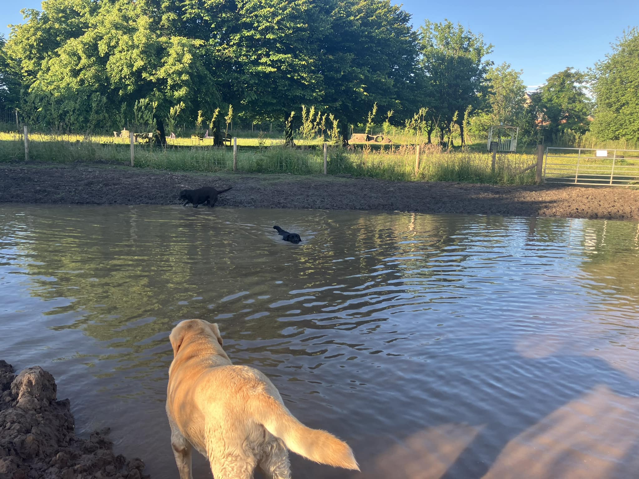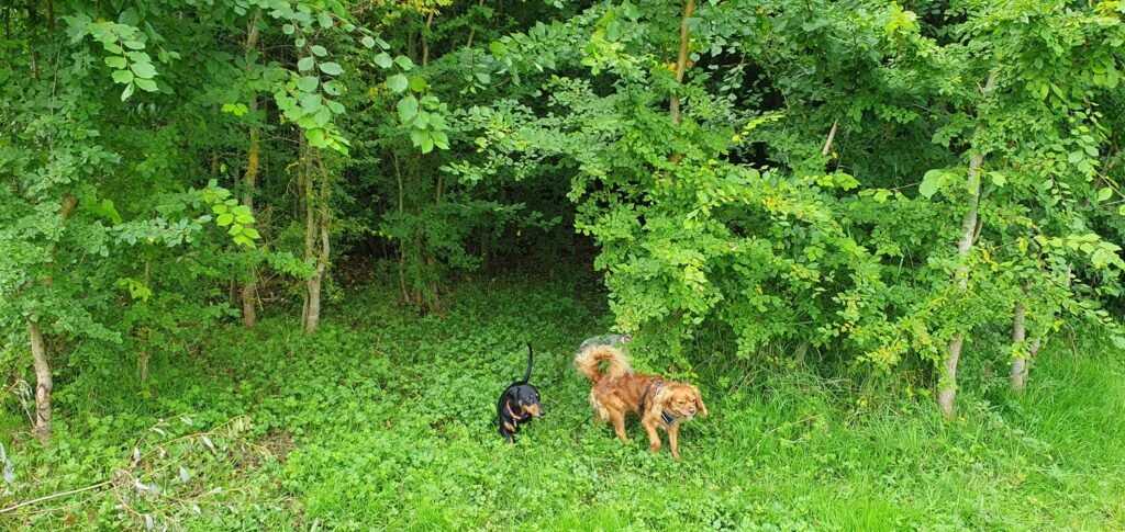 A truly beautiful meadow, with mature trees, and an area of woodland with a small stream running through. Ideal for water loving dogs, the Adventure Zone has a rainwater splash/swim pond. The area has been fenced off although determined water loving dogs may find a way in.